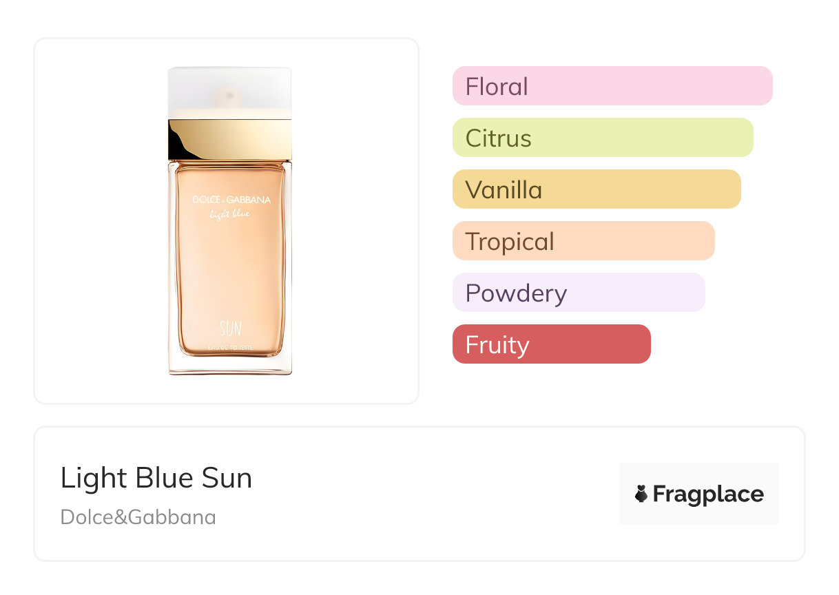Light Blue Sun، من Dolce&Gabbana تم إطلاقه في 2019. خبير العطور وراء هذا الإبداع هو Olivier Cresp. يحتوي على النوتات العلوية من تفاحة, جوز الهند, ليمون, and أوزونيك نوتس, النوتات الوسطى من فرانجيباني, الياسمين, and روز, and النوتات الأساسية من أمبرجريس, سيداروود, المسك, and الفانيليا.