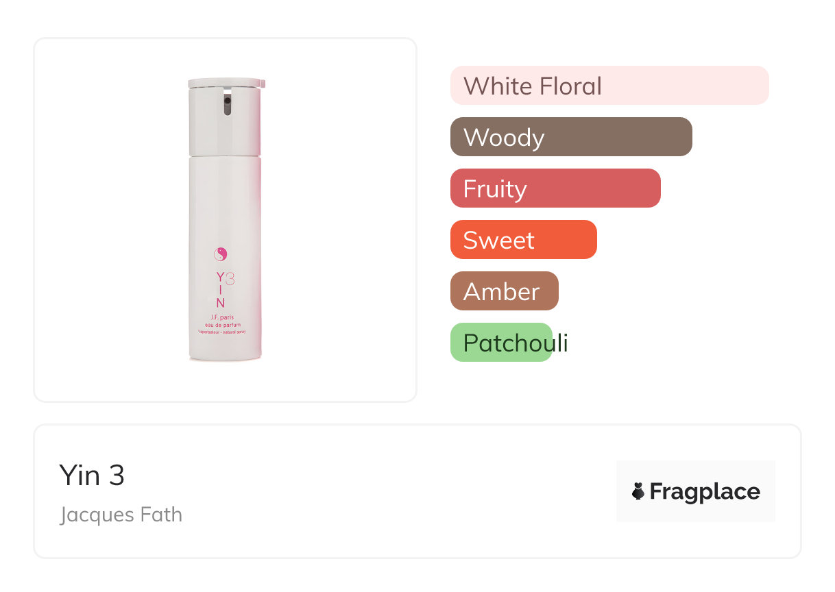 Yin 3, von Jacques Fath wurde im Jahr 2011 veröffentlicht. Der Parfümeur hinter dieser Kreation ist unbekannt. Er hat die Kopfnoten von Schwarze Johannisbeere and Jasmin, Herznoten von Gardenie, Orangenblüte, and Himbeere, and Basisnoten von Bernstein, Patchouli, and Holzige Noten.