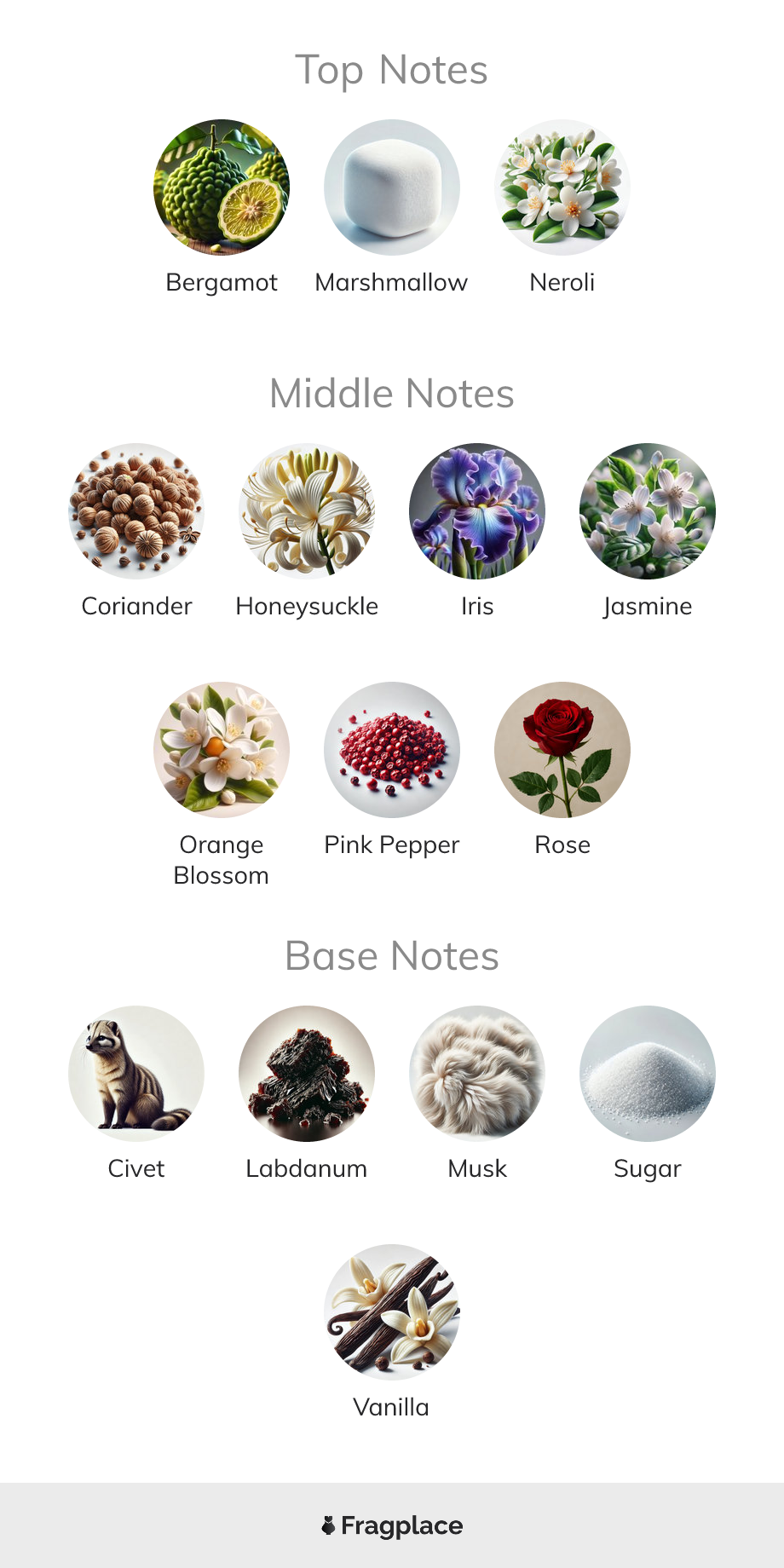 Seductive, von Moudon wurde im Jahr 2024 veröffentlicht. Der Parfümeur hinter dieser Kreation ist unbekannt. Er hat die Kopfnoten von Bergamotte, Marshmallow, and Neroli, Herznoten von Koriander, Geißblatt, Iris, Jasmin, Orangenblüte, Rosa Pfeffer, and Rose, and Basisnoten von Zibet, Labdanum, Moschus, Zucker, and Vanille.
