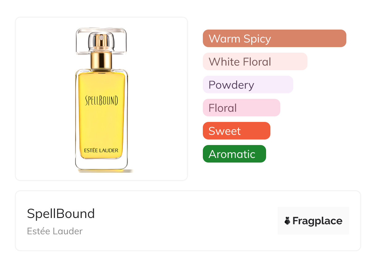 SpellBound, von Estée Lauder wurde im Jahr 2014 veröffentlicht. Der Parfümeur hinter dieser Kreation ist unbekannt. Er hat die Kopfnoten von Aprikose, Maiglöckchen, and Rose, Herznoten von Kardamom, Nelke, and Orangenblüte, and Basisnoten von Bernstein, Sandelholz, and Vanille.