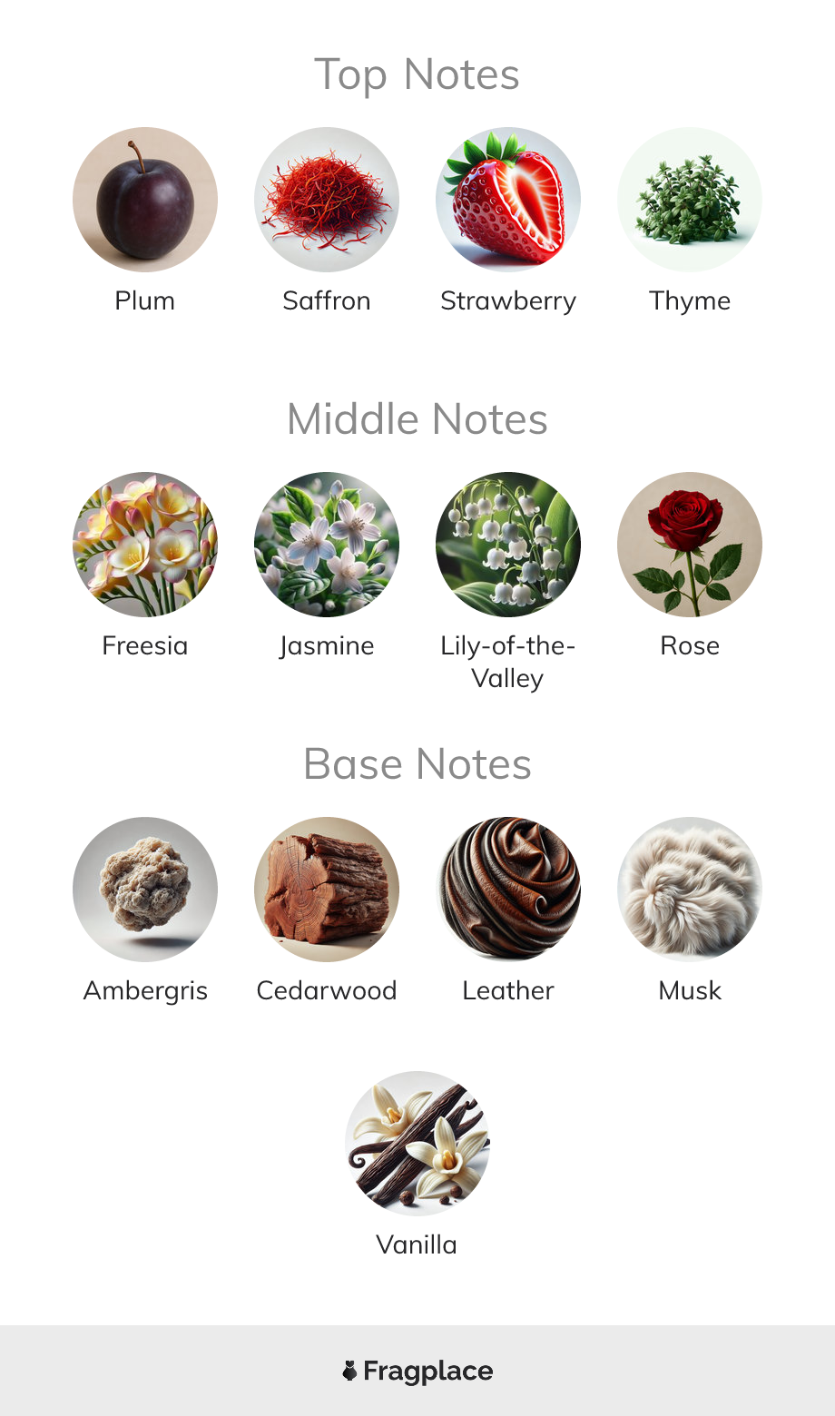 Desert Leather, von Nabeel wurde im Jahr 2022 veröffentlicht. Der Parfümeur hinter dieser Kreation ist unbekannt. Er hat die Kopfnoten von Pflaume, Safran, Strawberry, and Thymian, Herznoten von Freesie, Jasmin, Maiglöckchen, and Rose, and Basisnoten von Ambergris, Zedernholz, Leder, Moschus, and Vanille.