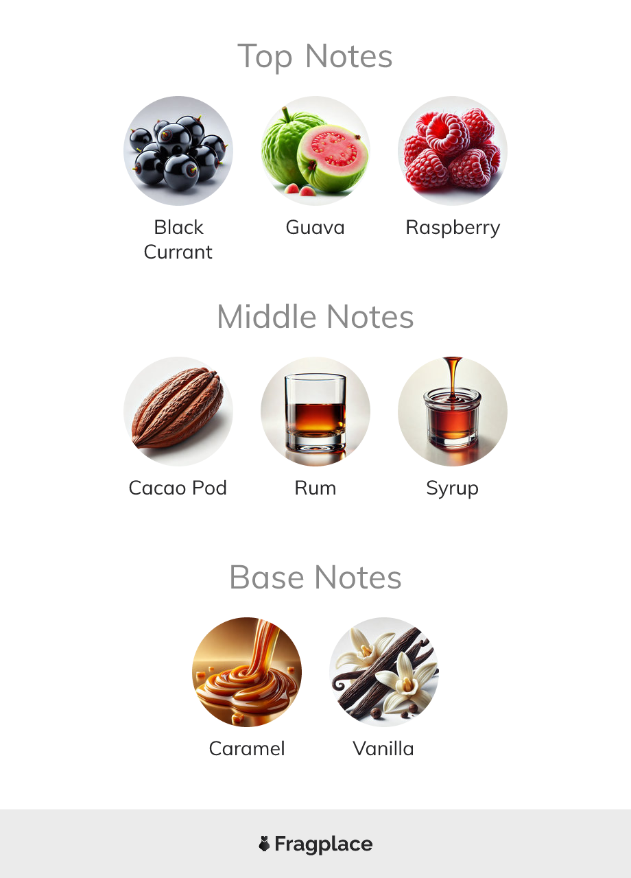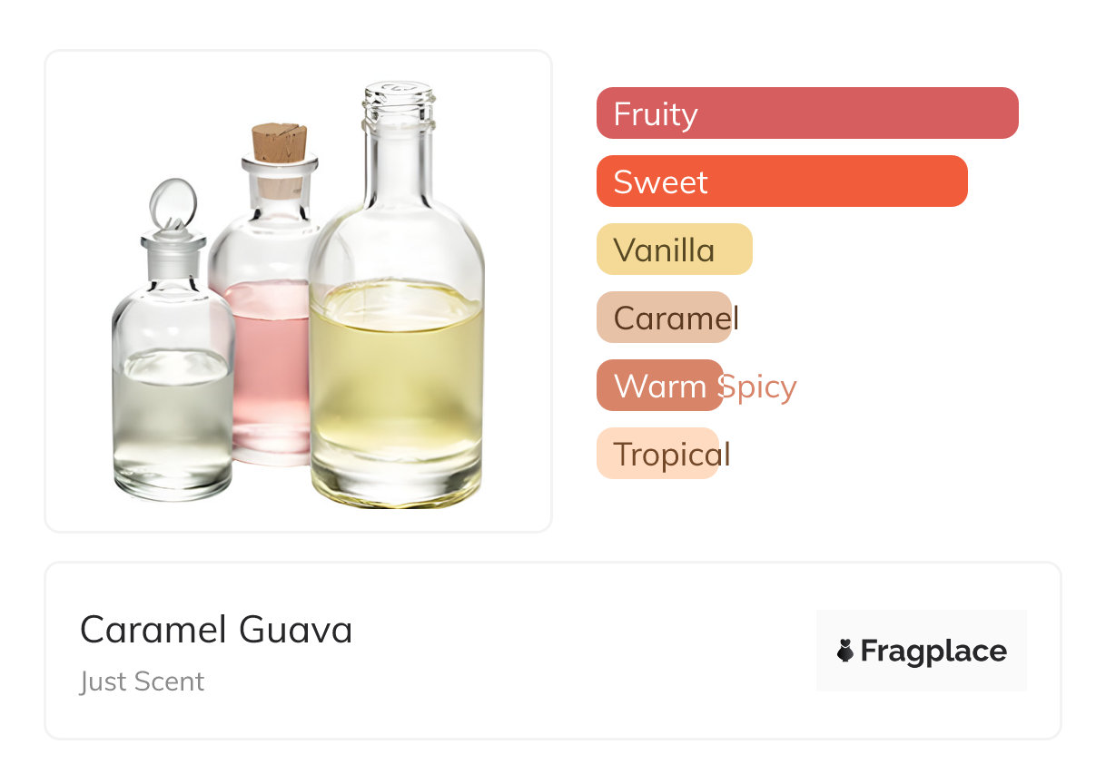 Caramel Guava, von Just Scent wurde im Jahr 2018 veröffentlicht. Der Parfümeur hinter dieser Kreation ist unbekannt. Er hat die Kopfnoten von Schwarze Johannisbeere, Guave, and Himbeere, Herznoten von Kakaoschote, Rum, and Sirup, and Basisnoten von Karamell and Vanille.