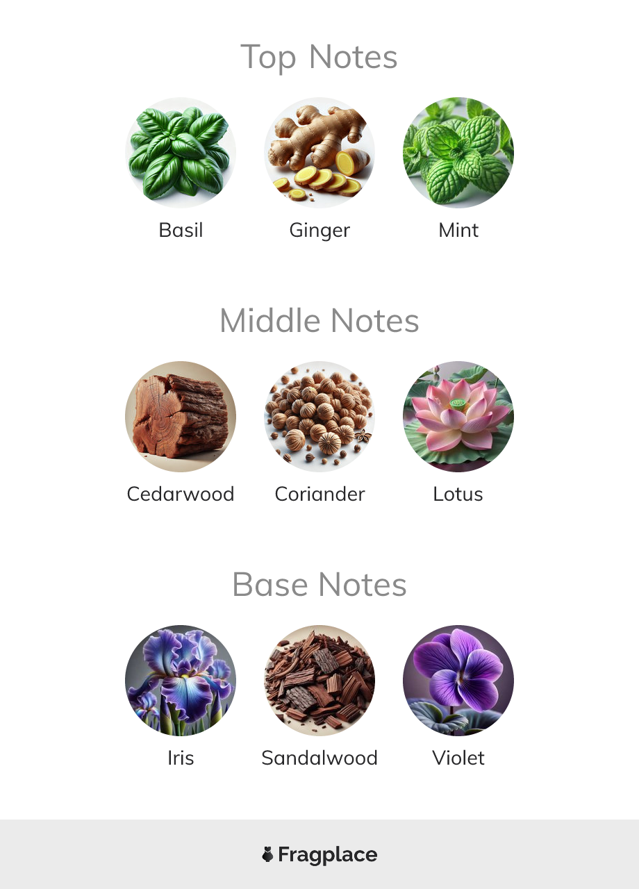 Royal Aqua, von English Laundry wurde im Jahr 2011 veröffentlicht. Der Parfümeur hinter dieser Kreation ist unbekannt. Er hat die Kopfnoten von Basilikum, Ingwer, and Minze, Herznoten von Zedernholz, Koriander, and Lotus, and Basisnoten von Iris, Sandelholz, and Violett.