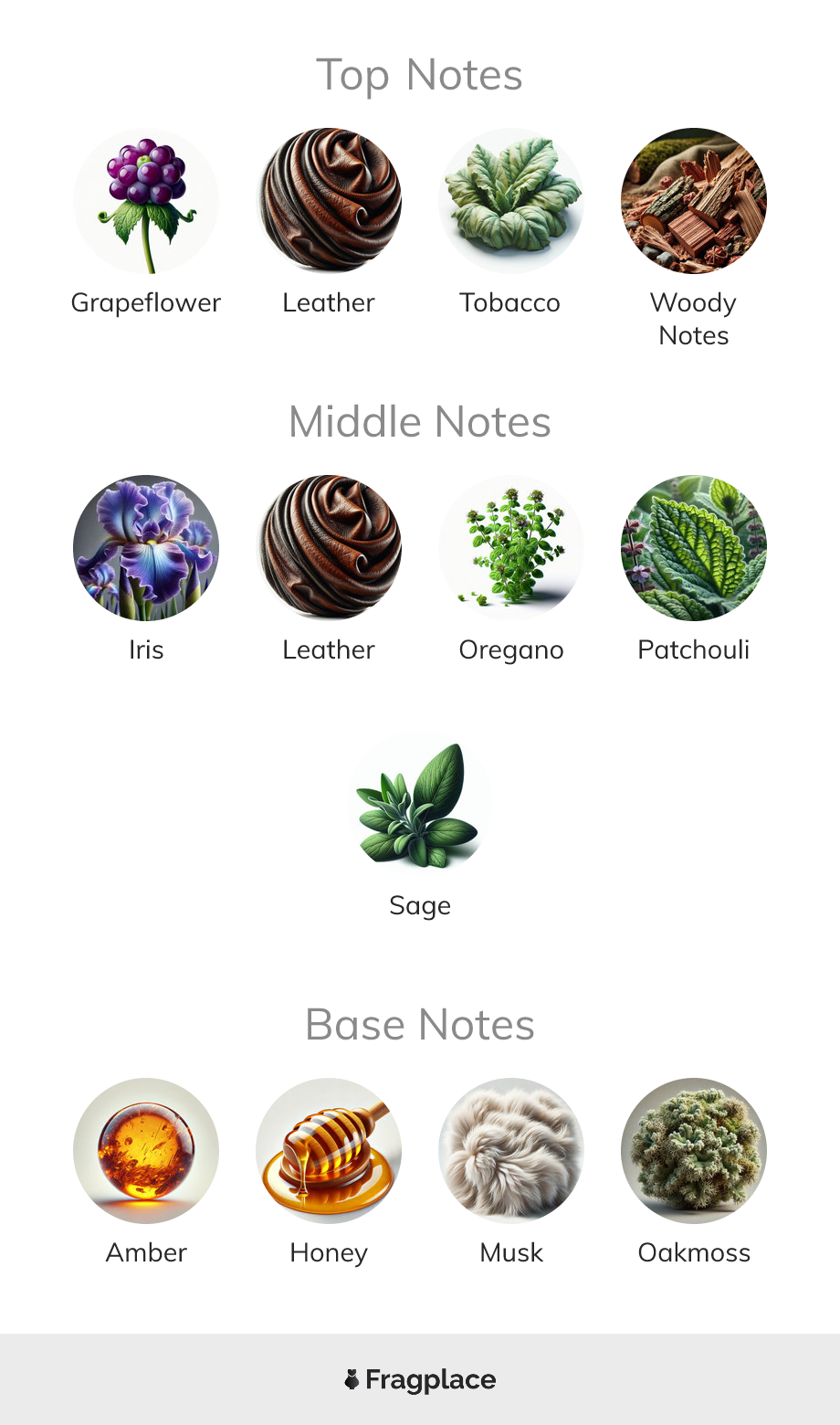 Подарочный (Podarochniy), from Flora was released at unknown year. The perfumer behind this creation is unknown. It has the top notes of Grapeflower, Leather, Tobacco, and Woody Notes, middle notes of Iris, Leather, Oregano, Patchouli, and Sage, and base notes of Amber, Honey, Musk, and Oakmoss.
