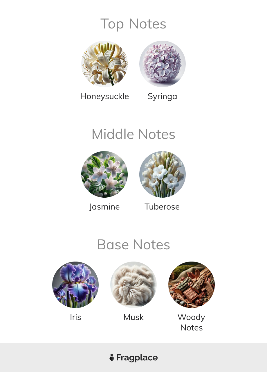 Symbol Eau de Parfum, from Princesse Marina De Bourbon was released in 2019. The perfumer behind this creation is Raphael Haury. It has the top notes of Honeysuckle and Syringa, middle notes of Jasmine and Tuberose, and base notes of Iris, Musk, and Woody Notes.