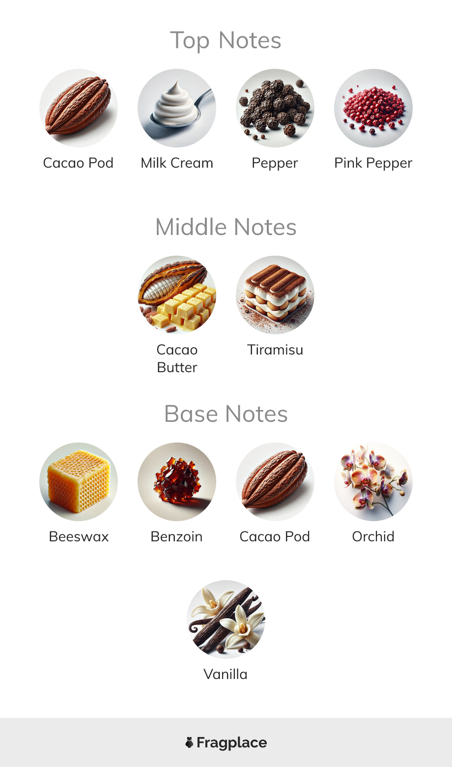 Tiramisù, from Tuttotondo was released in 2021. The perfumer behind this creation is unknown. It has the top notes of Cacao Pod, Milk Cream, Pepper, and Pink Pepper, middle notes of Cacao Butter and Tiramisu, and base notes of Beeswax, Benzoin, Cacao Pod, Orchid, and Vanilla.