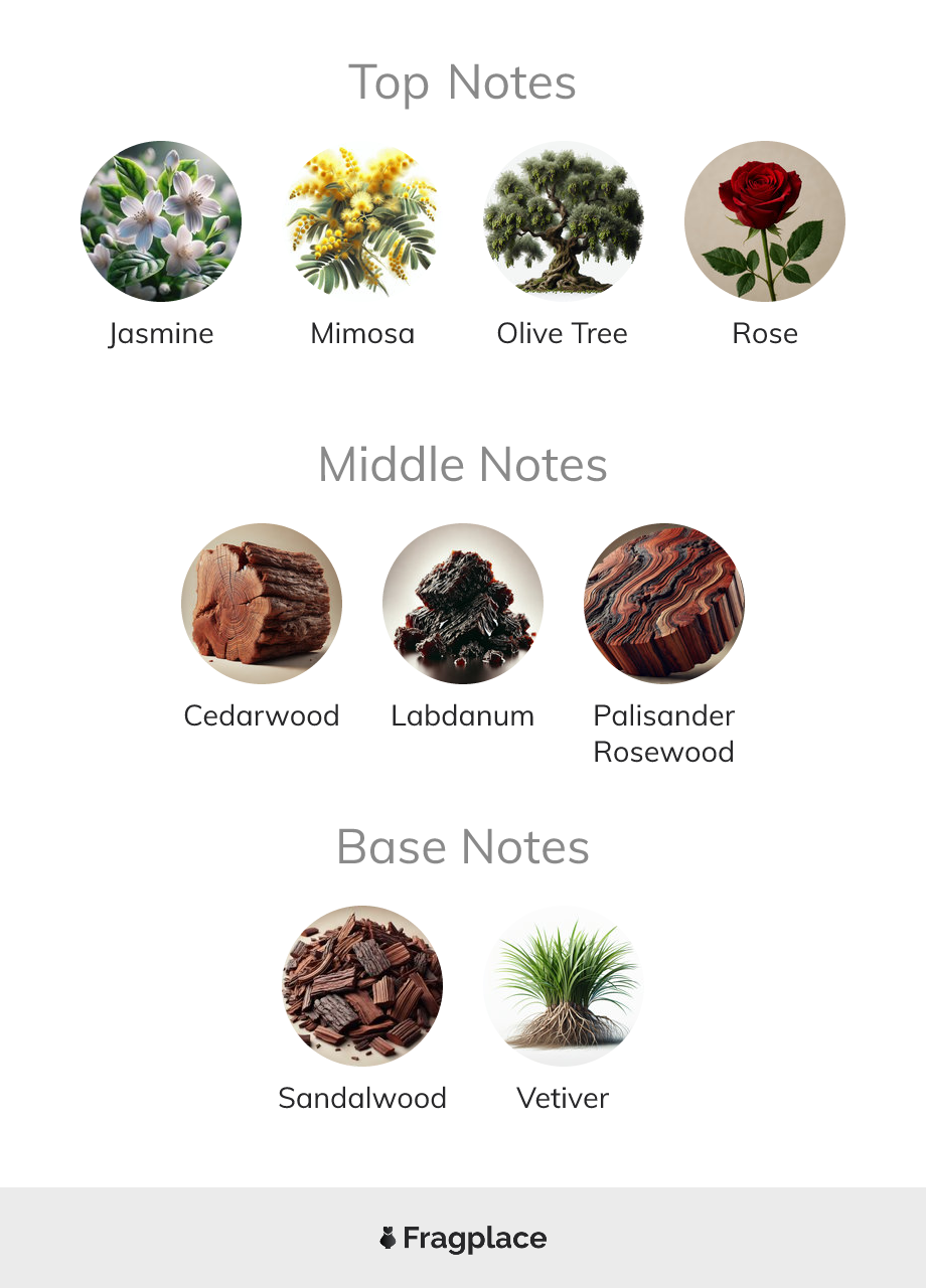 Samija, from Jacques Battini was released in 2018. The perfumer behind this creation is unknown. It has the top notes of Jasmine, Mimosa, Olive Tree, and Rose, middle notes of Cedarwood, Labdanum, and Palisander Rosewood, and base notes of Sandalwood and Vetiver.