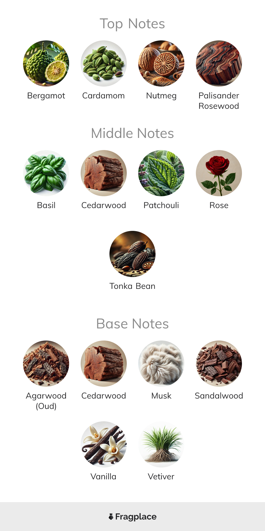 Patchouli, from Ajmal was released in 2019. The perfumer behind this creation is unknown. It has the top notes of Bergamot, Cardamom, Nutmeg, and Palisander Rosewood, middle notes of Basil, Cedarwood, Patchouli, Rose, and Tonka Bean, and base notes of Agarwood (Oud), Cedarwood, Musk, Sandalwood, Vanilla, and Vetiver.