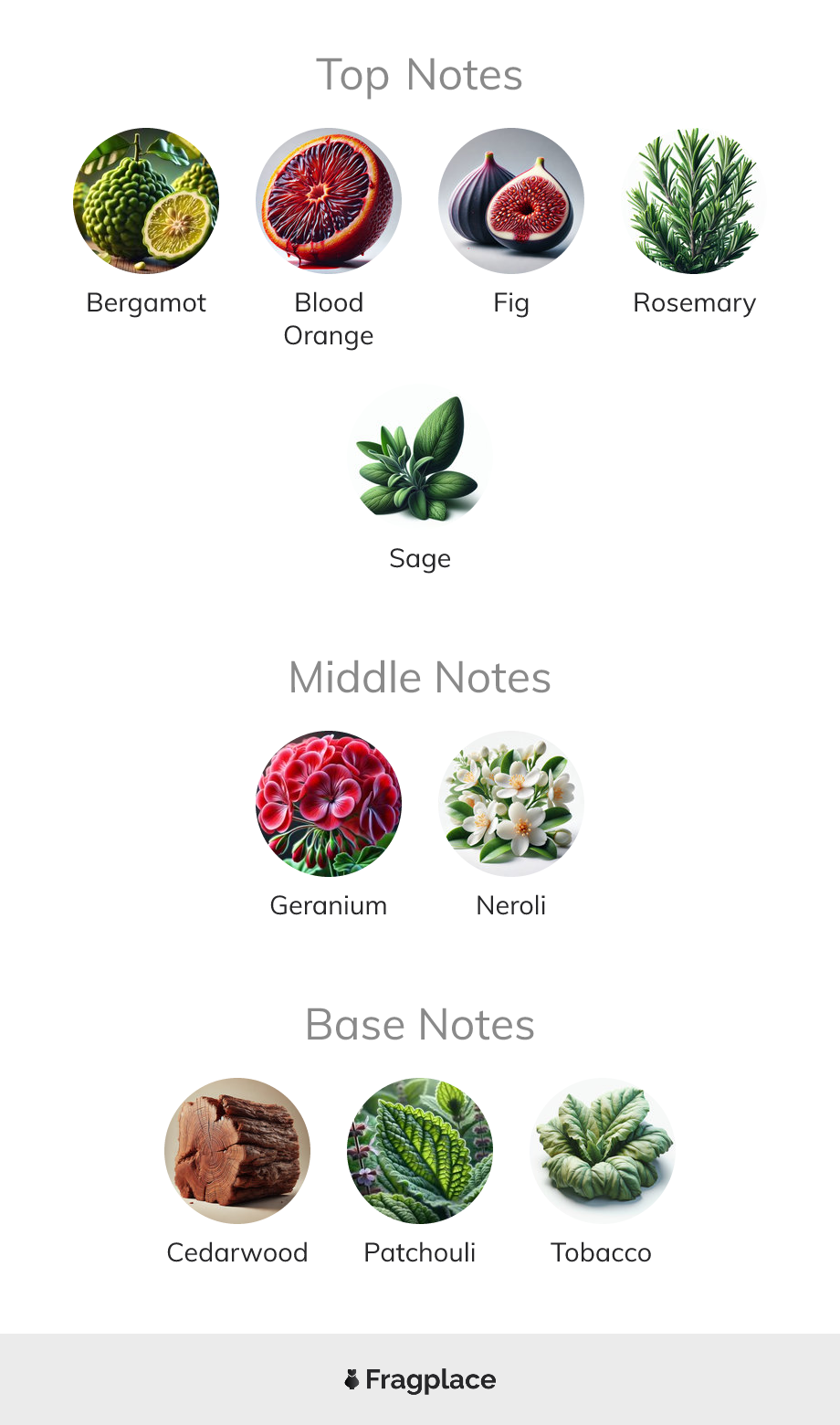 Verde Scuro, from NasoProfumo was released in 2023. The perfumer behind this creation is Shahar Schwartz. It has the top notes of Bergamot, Blood Orange, Fig, Rosemary, and Sage, middle notes of Geranium and Neroli, and base notes of Cedarwood, Patchouli, and Tobacco.