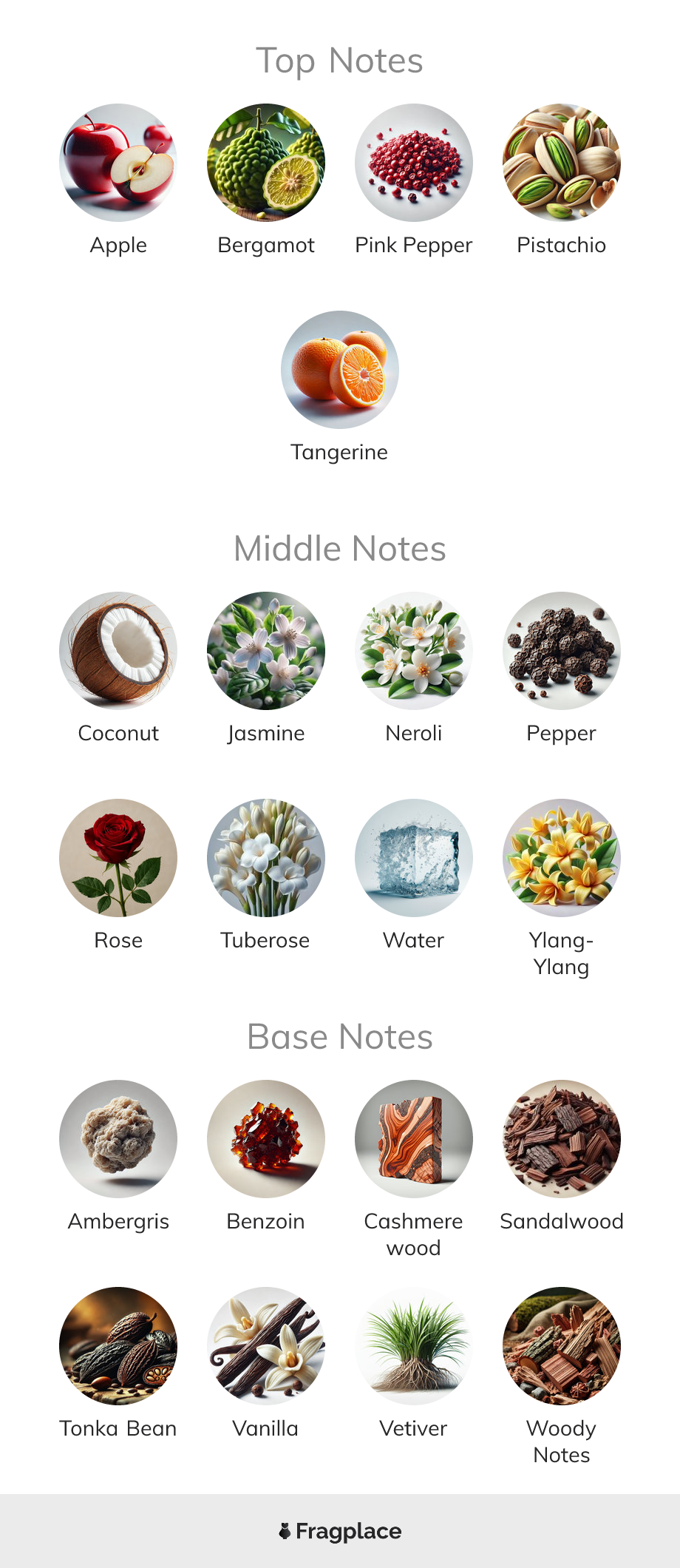 White Knight, from Oscar London was released in 2025. The perfumer behind this creation is unknown. It has the top notes of Apple, Bergamot, Pink Pepper, Pistachio, and Tangerine, middle notes of Coconut, Jasmine, Neroli, Pepper, Rose, Tuberose, Water, and Ylang-Ylang, and base notes of Ambergris, Benzoin, Cashmere wood, Sandalwood, Tonka Bean, Vanilla, Vetiver, and Woody Notes.