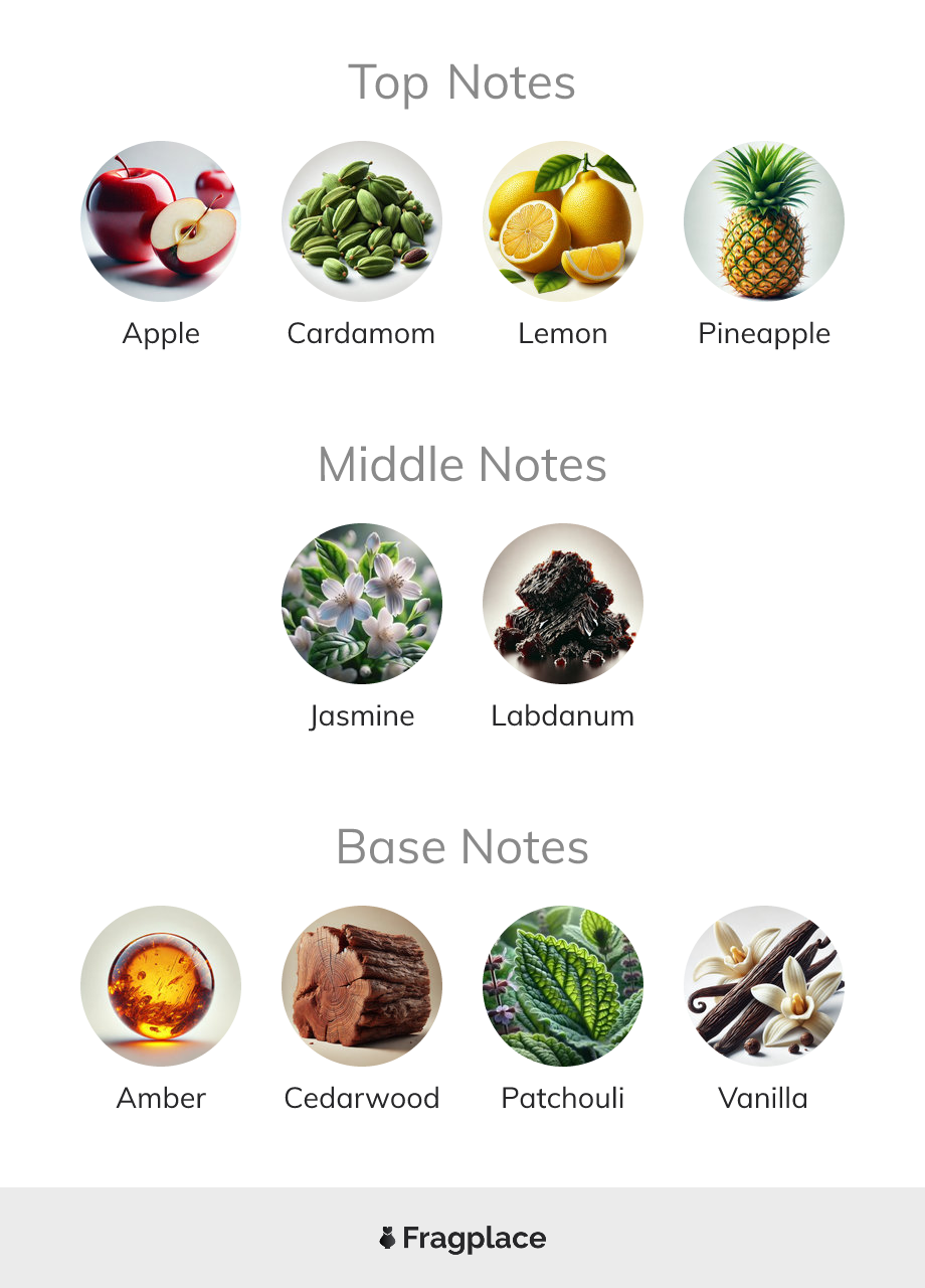 Contigo, from 10th Avenue Karl Antony was released at unknown year. The perfumer behind this creation is unknown. It has the top notes of Apple, Cardamom, Lemon, and Pineapple, middle notes of Jasmine and Labdanum, and base notes of Amber, Cedarwood, Patchouli, and Vanilla.