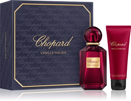 Vanille Malika by Chopard features top notes of Incense, Lychee, and Pink Pepper, middle notes of Vanilla, and base notes of Cashmeran, Opoponax, and Sandalwood.