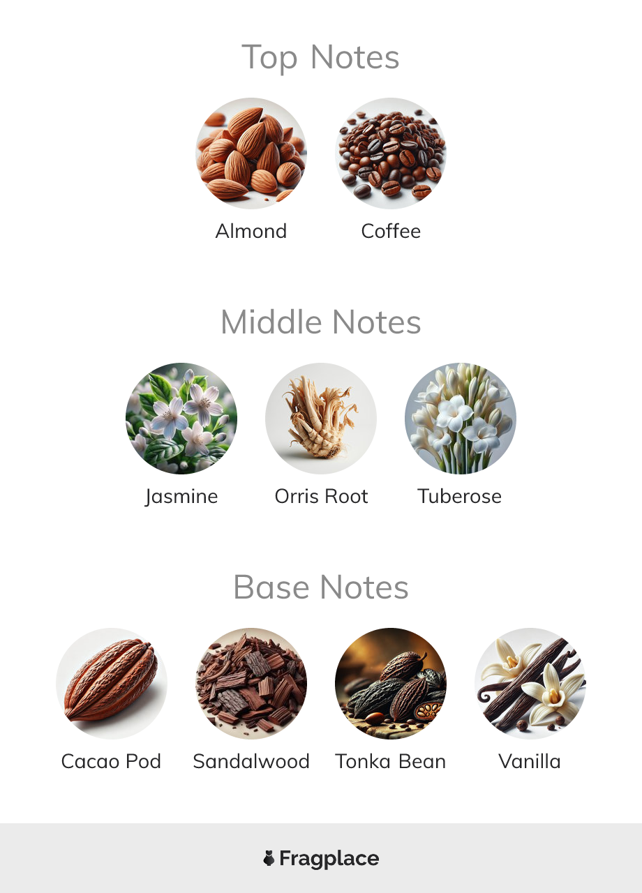 Essences 47, from Nuancielo was released in 2017. The perfumer behind this creation is unknown. It has the top notes of Almond and Coffee, middle notes of Jasmine, Orris Root, and Tuberose, and base notes of Cacao Pod, Sandalwood, Tonka Bean, and Vanilla.