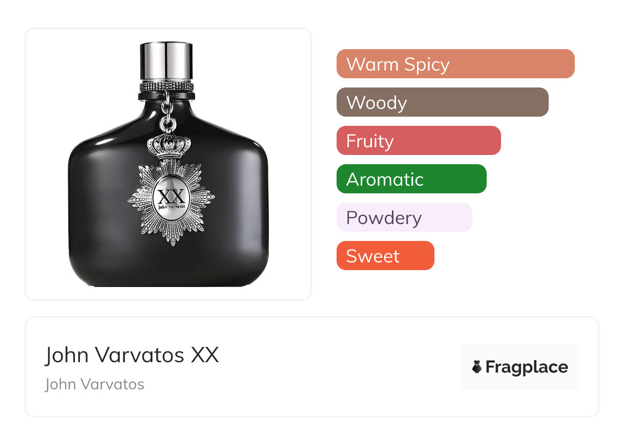 John Varvatos XX, from John Varvatos was released in 2020. The perfumer behind this creation is unknown. It has the top notes of Black Currant, Cardamom, and Red Apple, middle notes of Geranium, Orange Blossom, and Violet, and base notes of Cedarwood, Coffee, and Sandalwood.