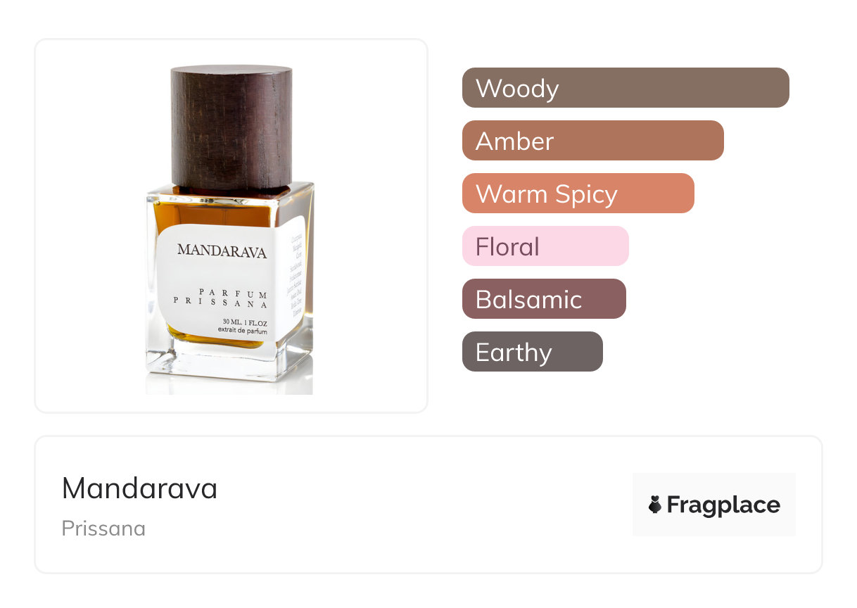 Mandarava, from Prissana was released in 2018. The perfumer behind this creation is Prin Lomros. The notes are Aldehydes, Amber, Ash, Benzoin, Champaca, Cinnamon, Civet, Coriander, Cumin, Cypriol Oil or Nagarmotha, Ebony Tree, English Marigold, Fig tree, Gardenia, Indian Oud, Jasmine, Lotus, Myrrh, Oakmoss, Olibanum (Frankincense), Patchouli, Rose, Sandalwood, Styrax, Tolu Balsam, Tuberose, Vetiver, Ylang-Ylang.