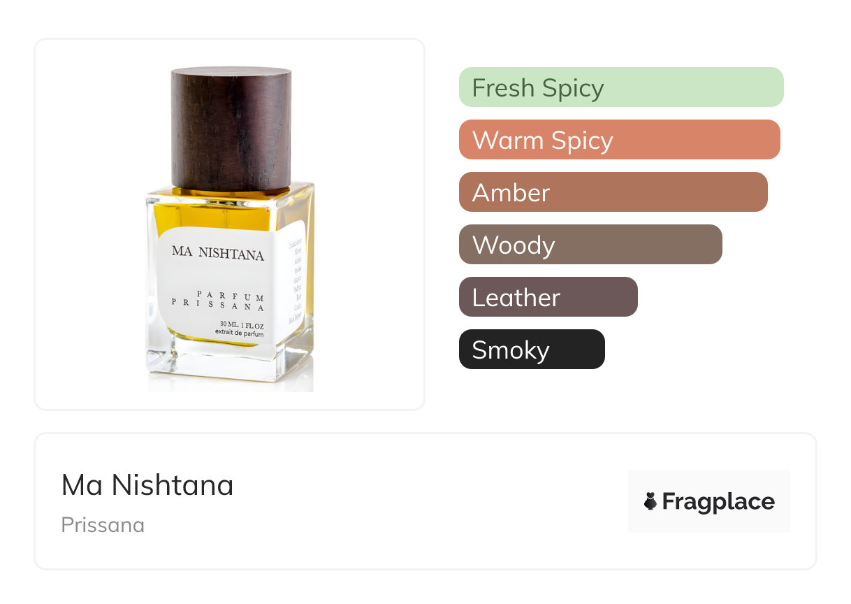 Ma Nishtana, from Prissana was released in 2018. The perfumer behind this creation is Prin Lomros. The notes are Aldehydes, Allspice, Amber, Caraway, Castoreum, Cloves, Cumin, Labdanum, Leather, Myrrh, Nutmeg, Olibanum (Frankincense), Patchouli, Pepper, Pink Pepper, Rose, Saffron, Sandalwood, Smoke, Styrax, Woody Notes.