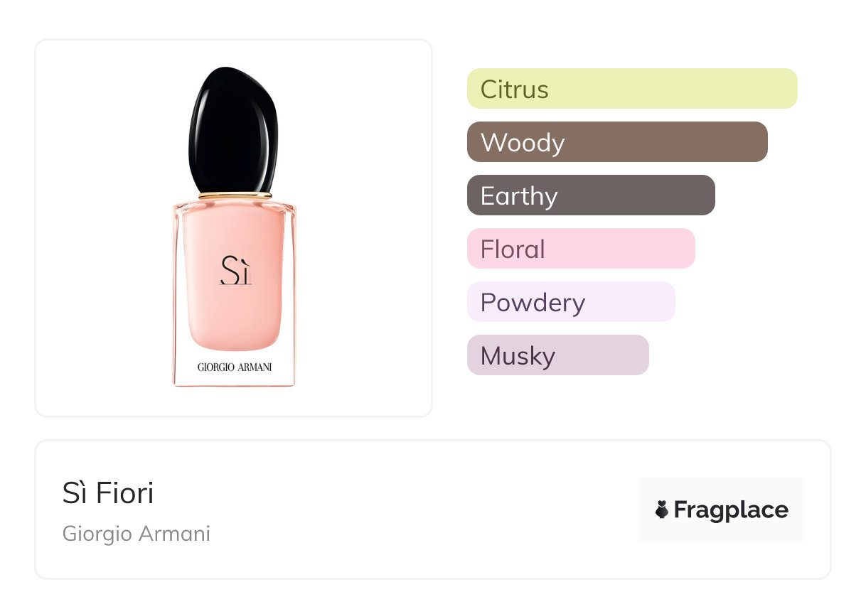 Sì Fiori, from Giorgio Armani was released in 2019. The perfumer behind this creation is Julie Massé. It has the top notes of Black Currant and Mandarin Orange, middle notes of Neroli, Oakmoss, Patchouli, and Rose, and base notes of Musk and Vanilla.