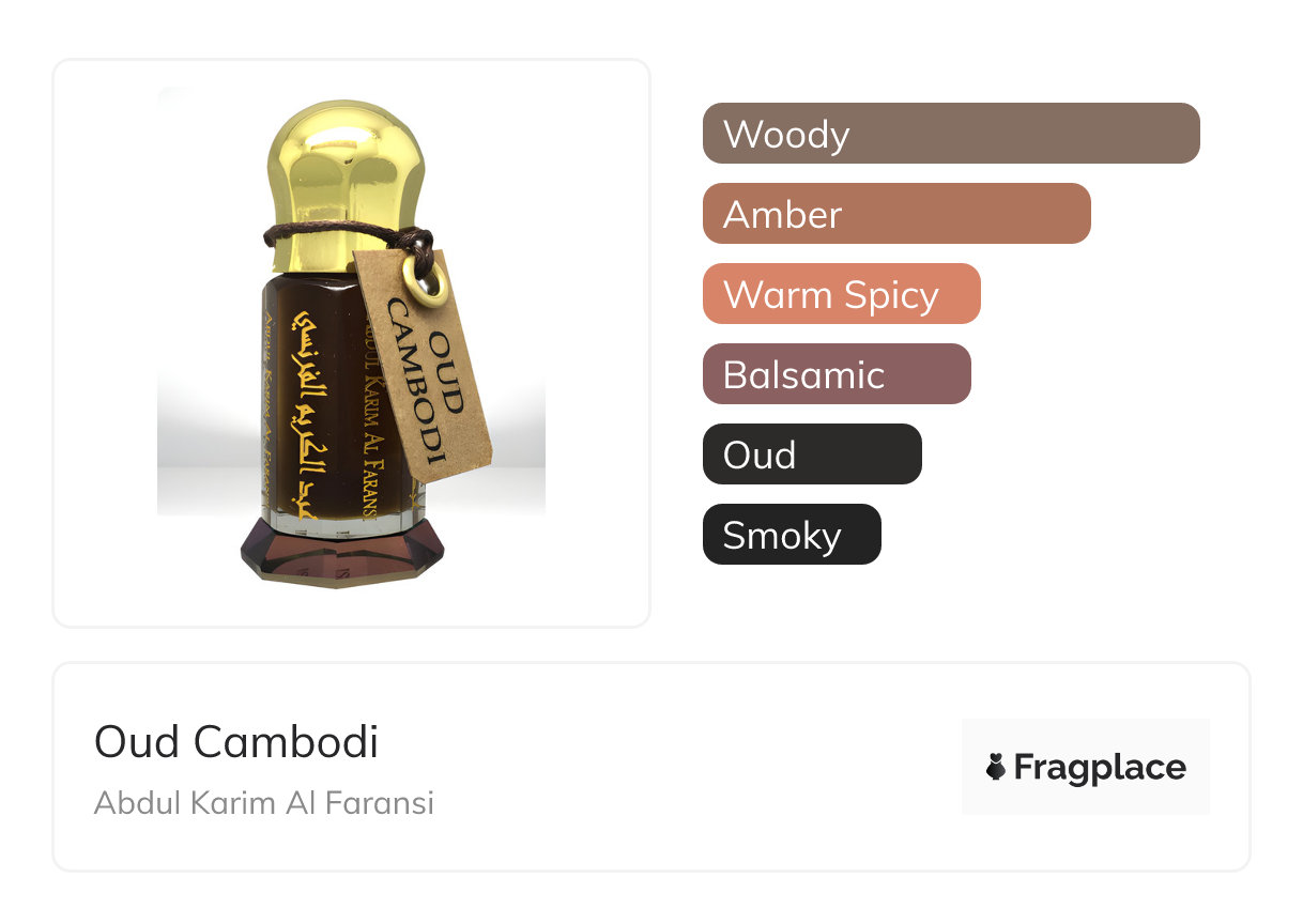 Oud Cambodi, from Abdul Karim Al Faransi was released in 2014. The perfumer behind this creation is Anthony Abdul Karim Marmin. It has the top notes of Agarwood (Oud), Incense, and Resins, middle notes of Candies and Woody Notes, and base notes of Cambodian Oud.