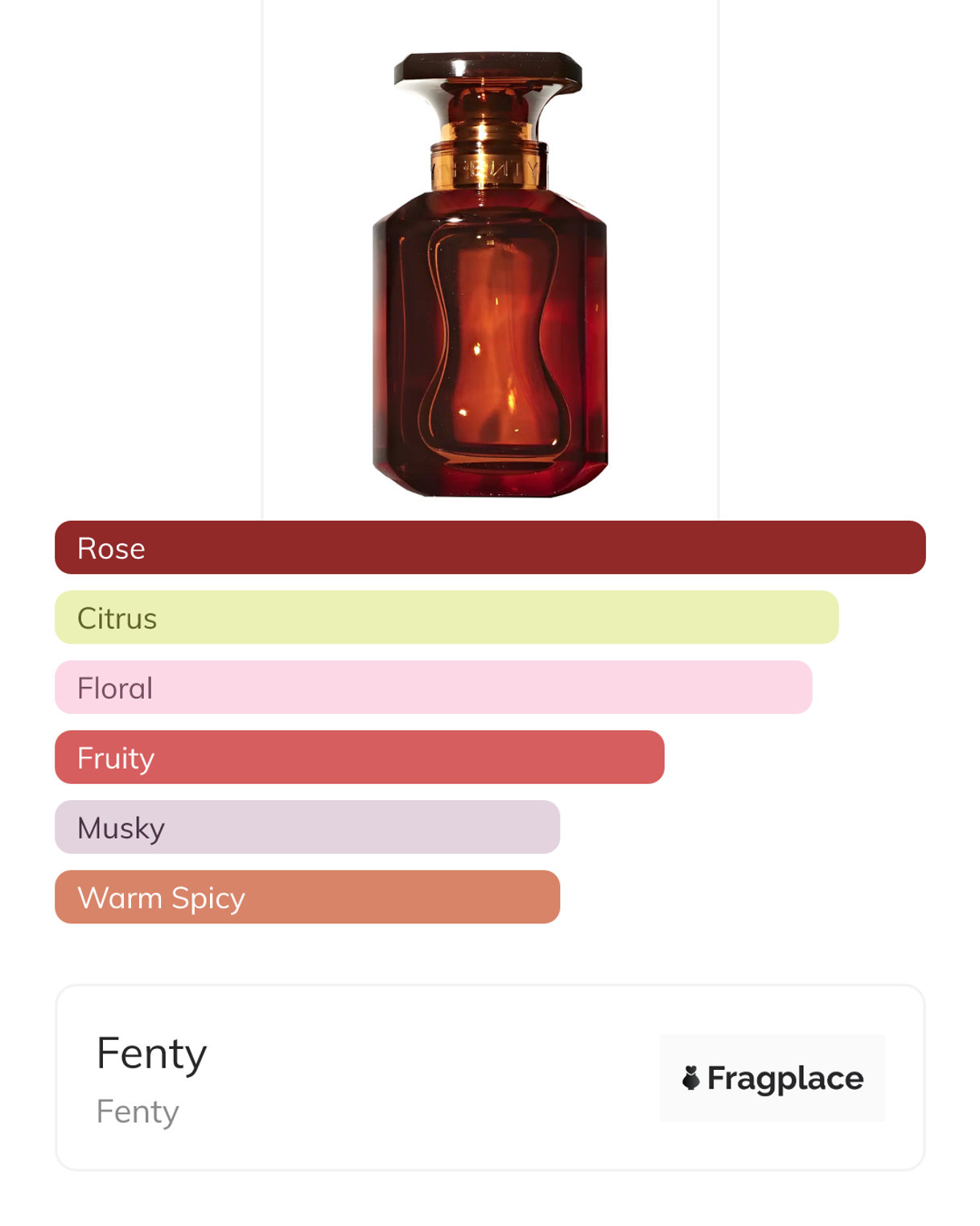 Fenty, from Fenty was released in 2021. The perfumer behind this creation is Jacques Cavallier Belletrud. It has the top notes of Blueberry and Tangerine, middle notes of Geranium, Magnolia, and Rose, and base notes of Musk and Patchouli.
