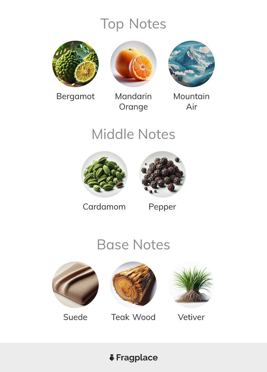 Alpine Suede, from Bath & Body Works was released in 2014. The perfumer behind this creation is unknown. It has the top notes of Bergamot, Mandarin Orange, and Mountain Air, middle notes of Cardamom and Pepper, and base notes of Suede, Teak Wood, and Vetiver.