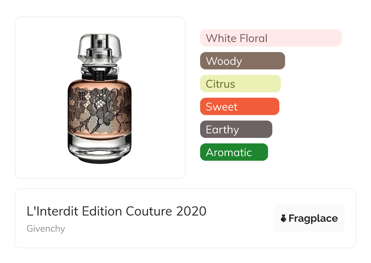 L'Interdit Edition Couture 2020, from Givenchy was released in 2020. The perfumer behind this creation is Anne Flipo, Dominique Ropion, and Fanny Bal. It has the top notes of Bergamot and Pear, middle notes of Jasmine, Orange Blossom, and Tuberose, and base notes of Ambroxan, Patchouli, Vanilla, and Vetiver.