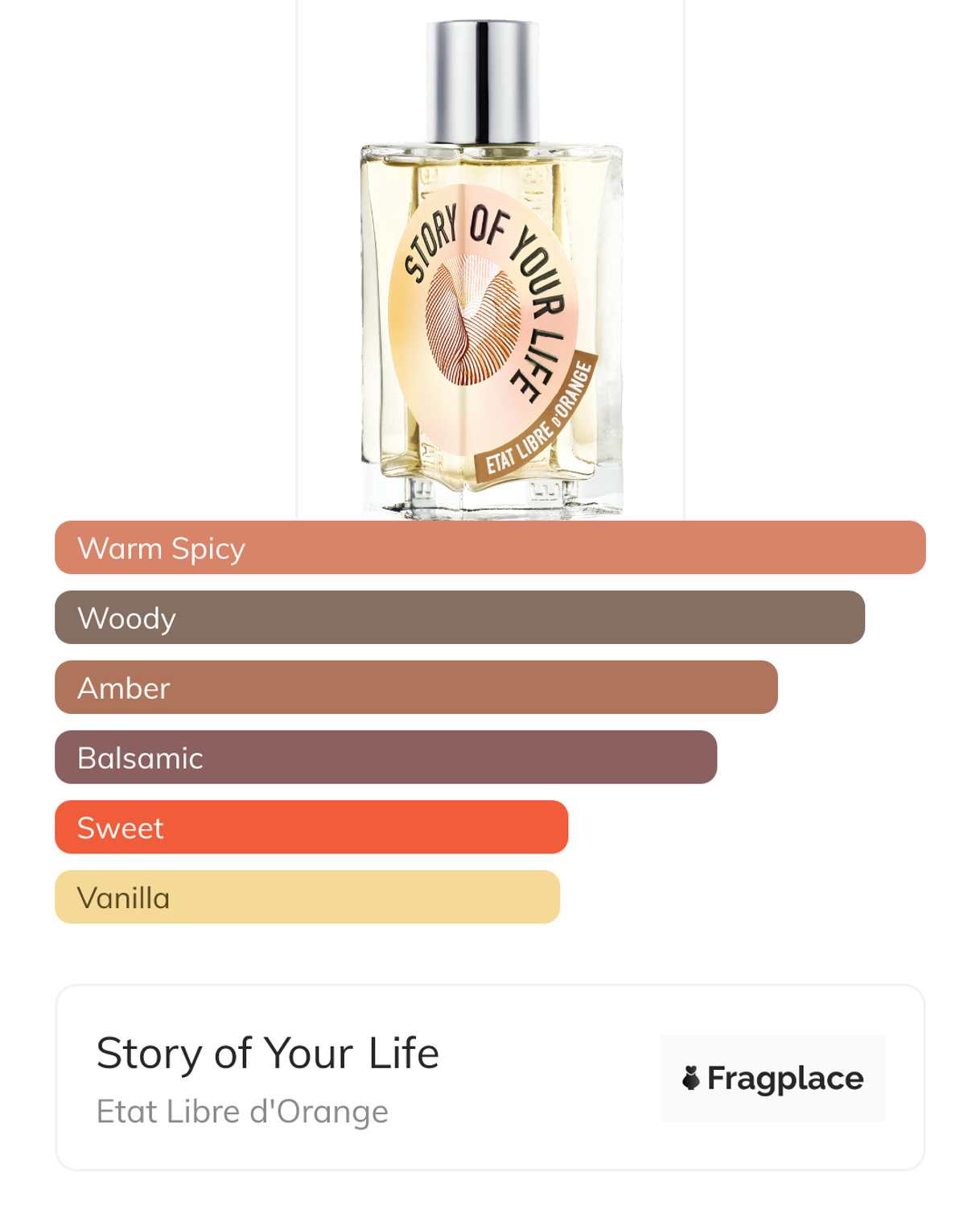 Story of Your Life, from Etat Libre d'Orange was released in 2024. The perfumer behind this creation is unknown. It has the top notes of Benzoin and Davana, middle notes of Bread and Orange Blossom, and base notes of Amber, Cacao Pod, Patchouli, Rum, Vanilla, and Woody Notes.