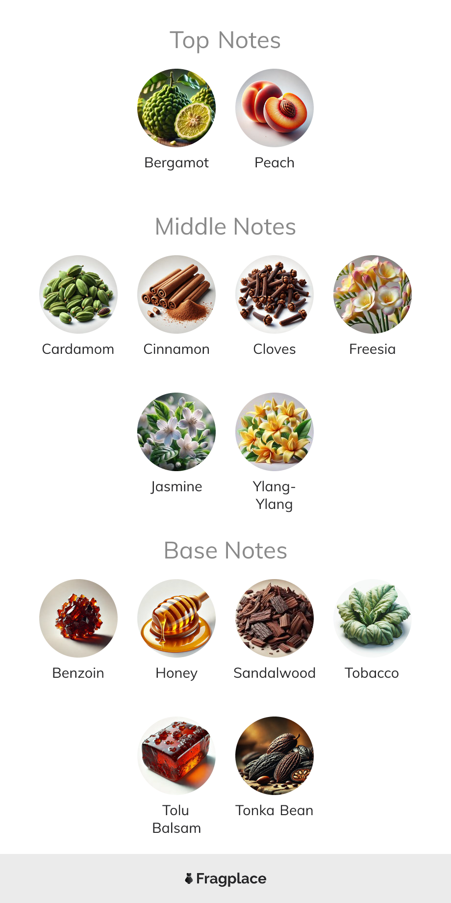 La Dandy, from D’ORSAY was released in 2010. The perfumer behind this creation is unknown. It has the top notes of Bergamot and Peach, middle notes of Cardamom, Cinnamon, Cloves, Freesia, Jasmine, and Ylang-Ylang, and base notes of Benzoin, Honey, Sandalwood, Tobacco, Tolu Balsam, and Tonka Bean.