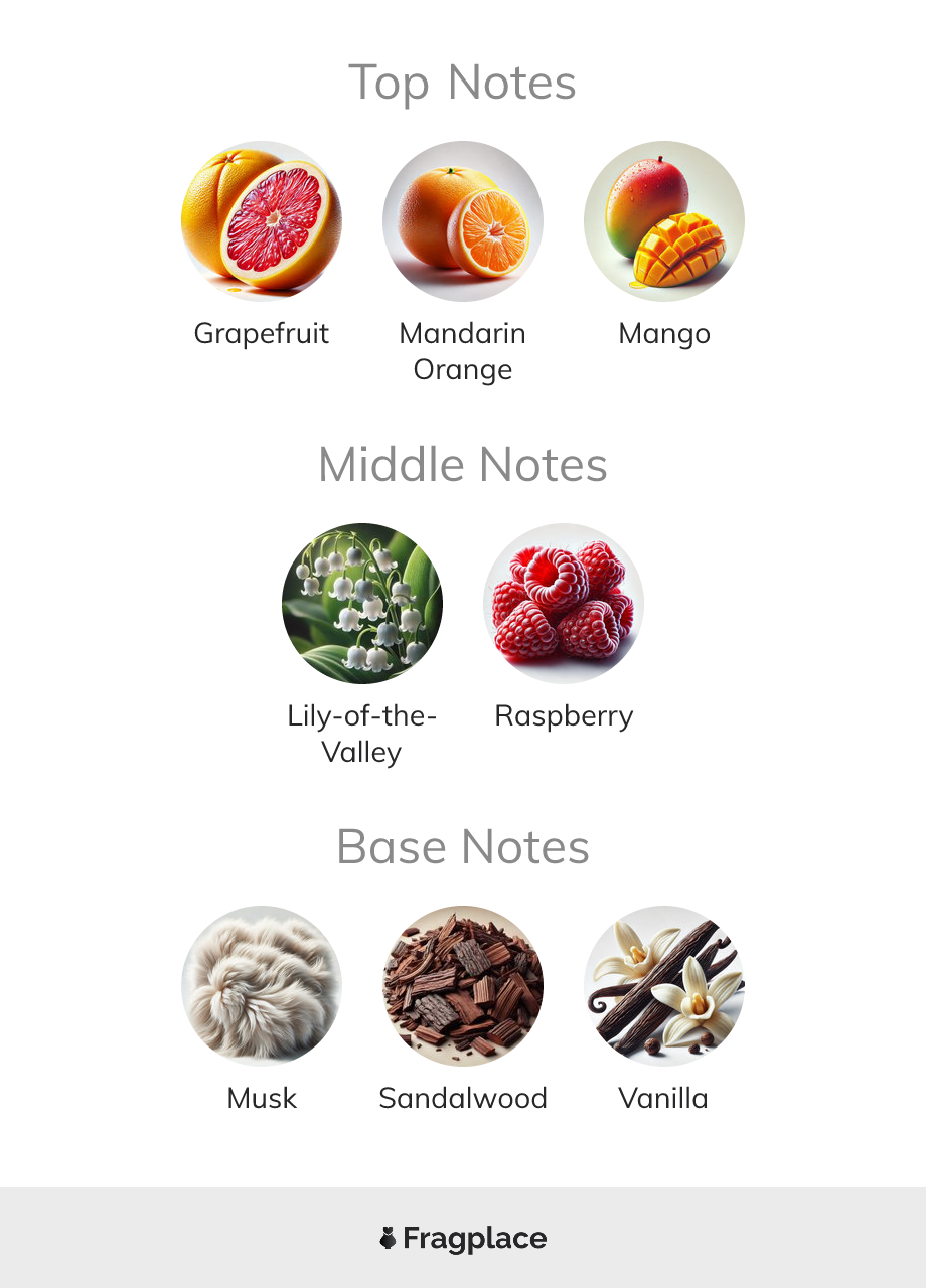 Like an Unforgettable Kiss 2015, from essence was released in 2015. The perfumer behind this creation is unknown. It has the top notes of Grapefruit, Mandarin Orange, and Mango, middle notes of Lily-of-the-Valley and Raspberry, and base notes of Musk, Sandalwood, and Vanilla.