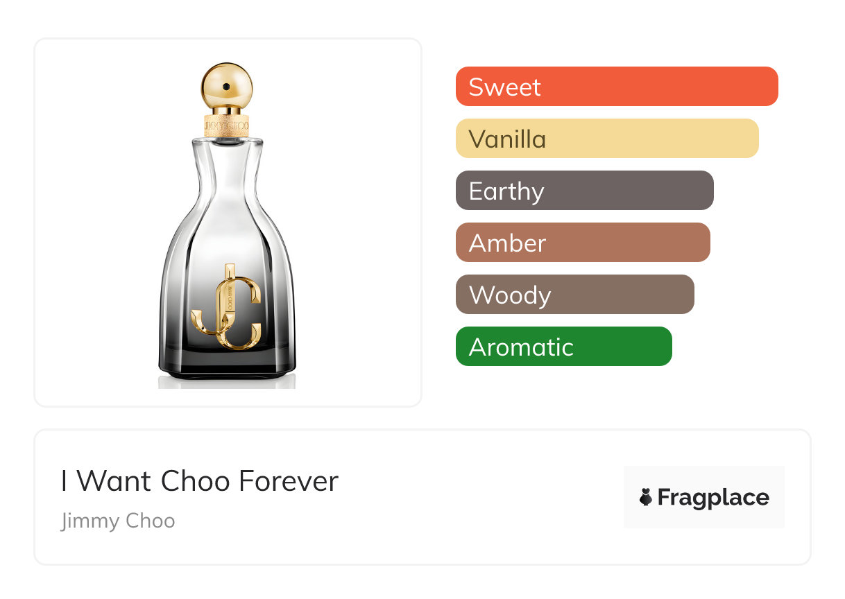I Want Choo Forever, from Jimmy Choo was released in 2022. The perfumer behind this creation is Louise Turner and Sonia Constant. It has the top notes of Almond and Rose, middle notes of Cherry, Jasmine, and Vetiver, and base notes of Amber, Oakmoss, Tonka Bean, and Vanilla.