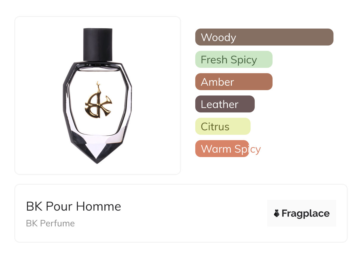 BK Pour Homme, from BK Perfume was released in 2018. The perfumer behind this creation is Marc Daniel Heimgartner. It has the top notes of Bergamot, Birch, Cypriol Oil or Nagarmotha, Floral Notes, and Grapefruit, middle notes of Amber, Cumin, Jasmine, Pepper, Rose, Sea Water, and Woody Notes, and base notes of Ambergris, Ambroxan, Cedarwood, Leather, Musk, Patchouli, Sandalwood, and Seaweed.