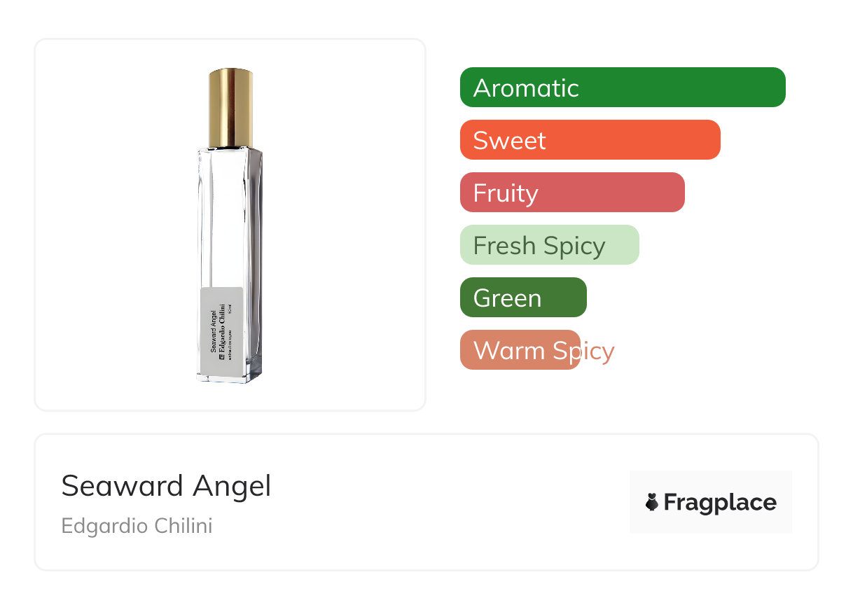 Seaward Angel, from Edgardio Chilini was released in 2016. The perfumer behind this creation is Sergey Karov. It has the top notes of Bitter Orange, Black Currant, Davana, Galbanum, Lemon, Melon, Raspberry, Rosemary, and Wolfberry, middle notes of Almond, Caramel, Cloves, Dark Chocolate, Geranium, Honey, Lavender, Mint, Peach, Plum, Sage, and Wormwood, and base notes of Amber, Leather, Oakmoss, Patchouli, and Vanilla.