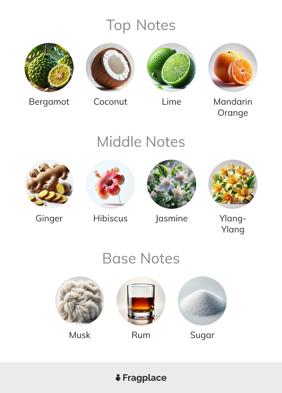 Secret Lagoon, from Oakcha was released at unknown year. The perfumer behind this creation is unknown. It has the top notes of Bergamot, Coconut, Lime, and Mandarin Orange, middle notes of Ginger, Hibiscus, Jasmine, and Ylang-Ylang, and base notes of Musk, Rum, and Sugar.