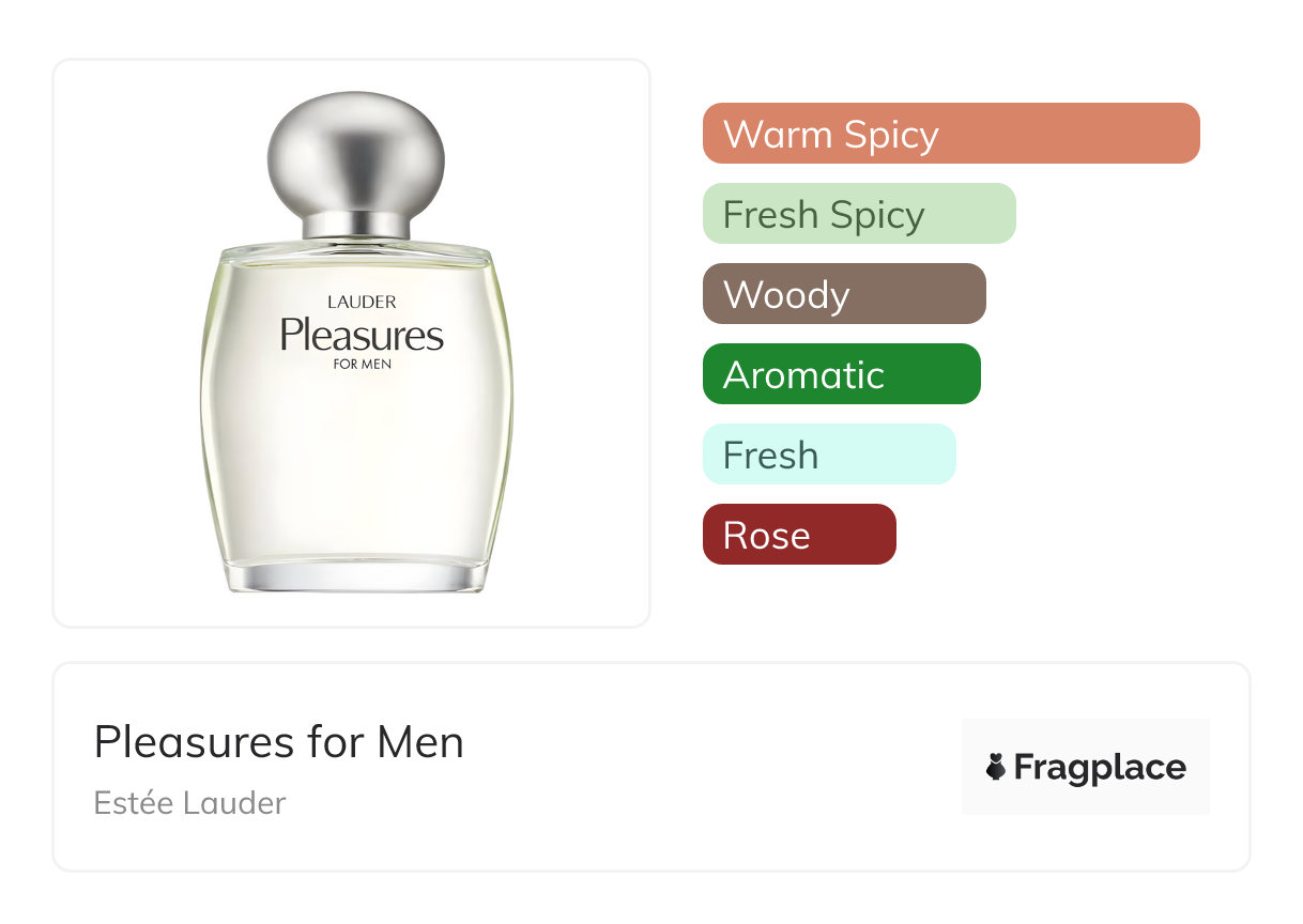Pleasures for Men, from Estée Lauder was released in 1997. The perfumer behind this creation is Carlos Benaim, Jean Claude Delville, and Pierre Wargnye. It has the top notes of Grapefruit, Green Notes, Nectarine, and Water, middle notes of Coriander, Geranium, Ginger, Lavender, Pepper, Pimento, and Rose, and base notes of Benzoin, Ebony Tree, Oakmoss, and Sandalwood.