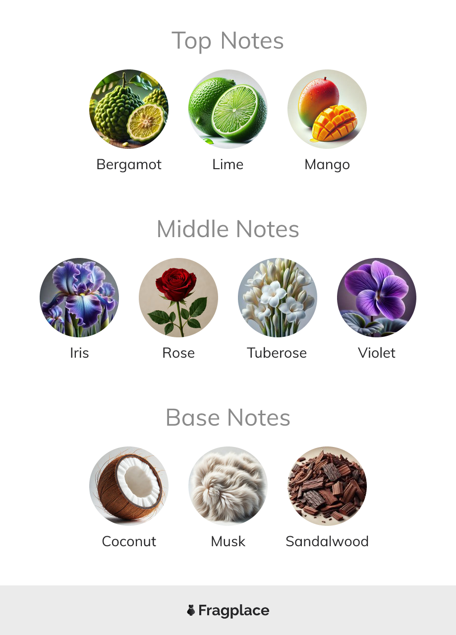Aqua Allegoria Florabloom, de Guerlain fue lanzado en 2024. El perfumista detrás de esta creación es Delphine Jelk. Tiene las notas de salida de Bergamota, Cal, and Mango, notas de corazón de Iris, Rosa, Tuberosa, and Violeta, and notas de fondo de Coco, Almizcle, and Sándalo.