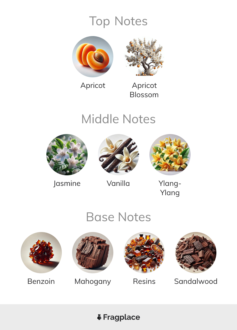 Huele bien, pero nada más. Fragancia a base de vainilla sintética. Realmente no es suave ni sedosa. No olí las notas de albaricoque o jazmín. Muy decepcionada... Está claro que no es para mí.