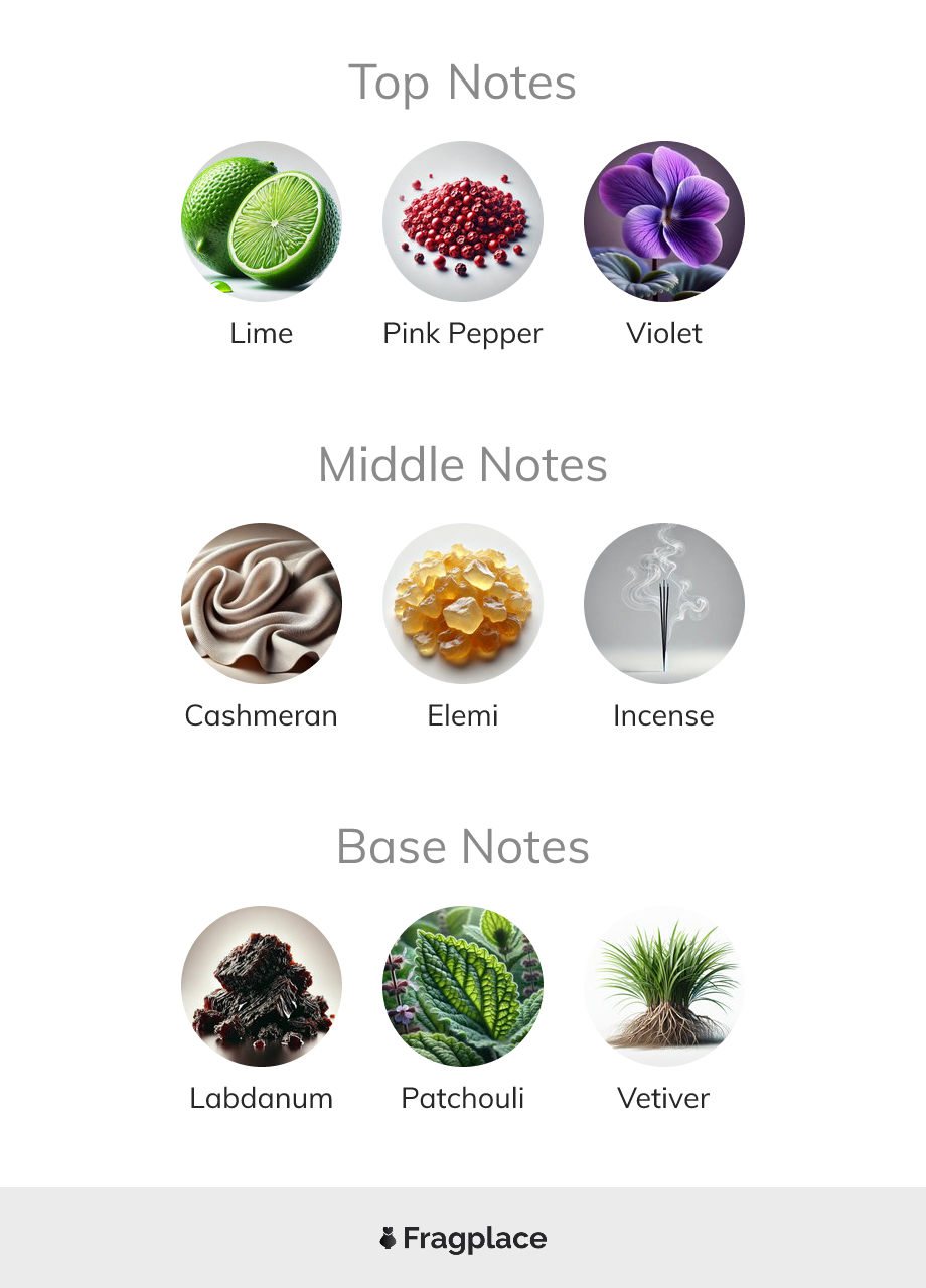 Imagina una antigua iglesia nórdica enclavada en la nieve, bañada por la luz extraterrestre de la aurora boreal, con el humo del incienso impregnado en cada piedra. La lima, ácida y eléctrica, estalla como una estrella renegada que surca los cielos; la pimienta rosa, aguda y crepitante, se hace eco del descenso, exilio de otro mundo, anunciado por una fanfarria celestial. Cashmeran, elemi y labdanum, suaves, ahumados y entrelazados con secretos resinosos, susurran una nana de gracia caída. Desde la oscura vidriera, una curtida abadesa suspira y enciende una solitaria vela de cera de abeja, cuyo dulce resplandor ritual es un faro para este vagabundo de la noche, cuyas alas, antaño ardientes de fuego celestial, ahora no proyectan sombra alguna.