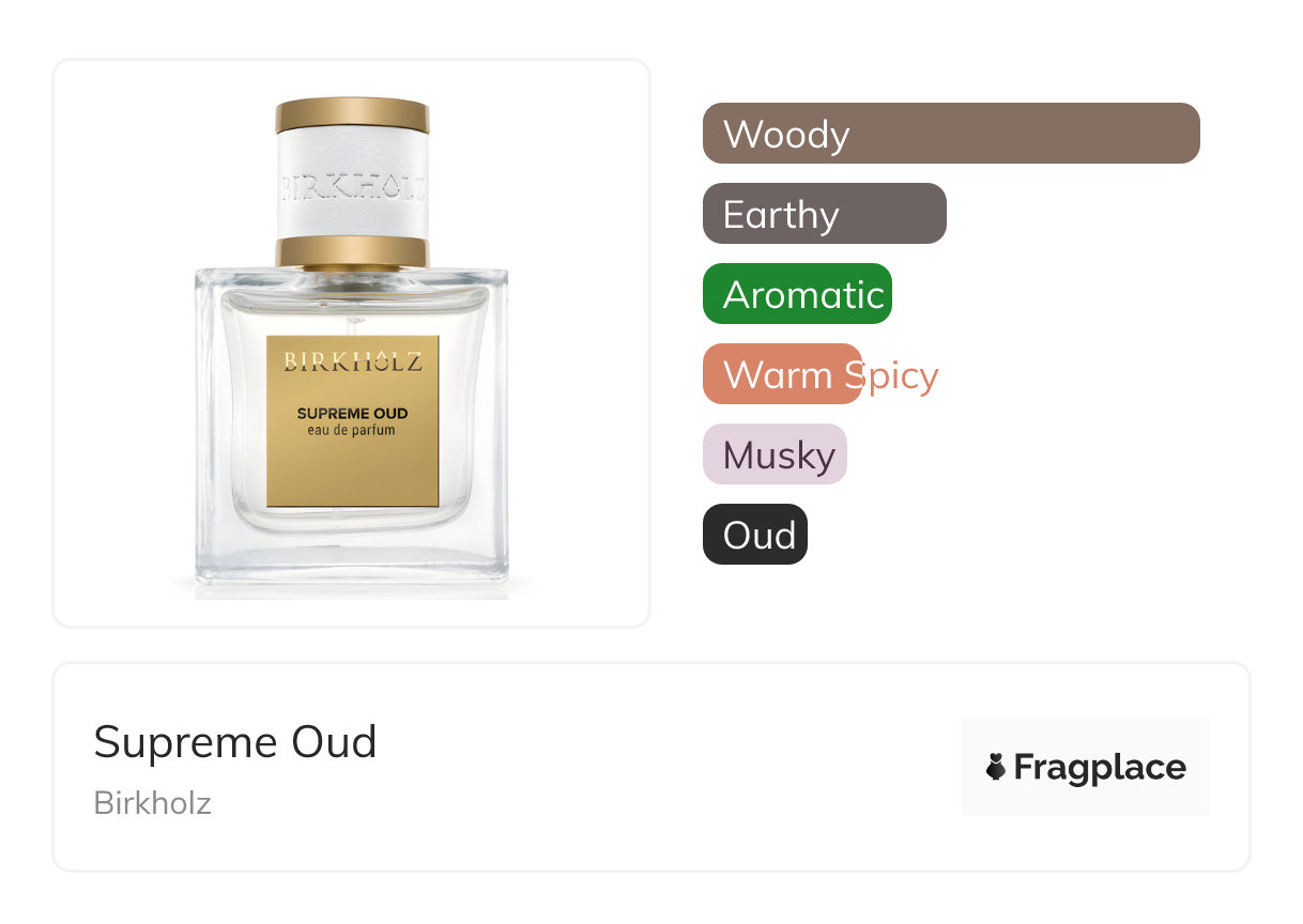 Supreme Oud, de Birkholz fue lanzado en 2017. El perfumista detrás de esta creación es desconocido. Tiene las notas de salida de Madera de cedro, Canela, and Pimienta rosa, notas de corazón de Madera de cedro, Pachulí, and Vetiver, and notas de fondo de Madera de agar (oud), Ámbar, Almizcle, and Vetiver.
