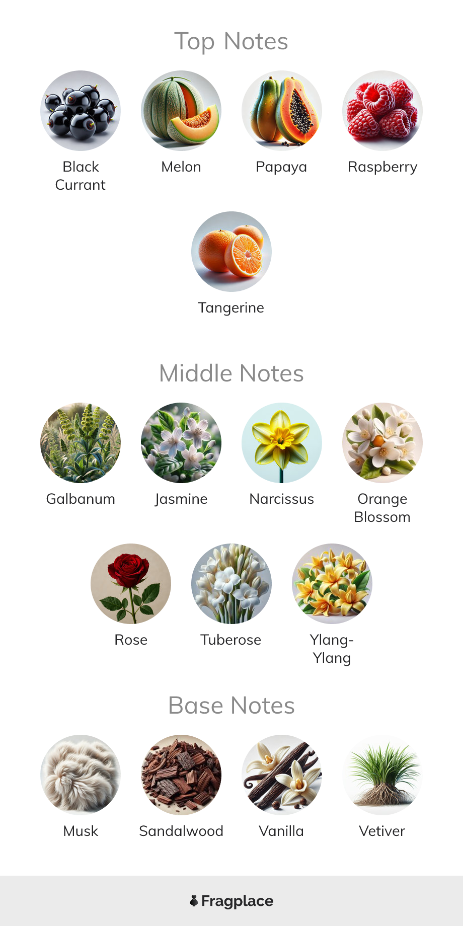 Miss Guepard, de Guepard fue lanzado en 2001. El perfumista detrás de esta creación es desconocido. Tiene las notas de salida de Grosella negra, Melón, Papaya, Frambuesa, and Mandarina, notas de corazón de Gálbano, Jazmín, Narciso, Azahar, Rosa, Tuberosa, and Ylang-Ylang, and notas de fondo de Almizcle, Sándalo, Vainilla, and Vetiver.