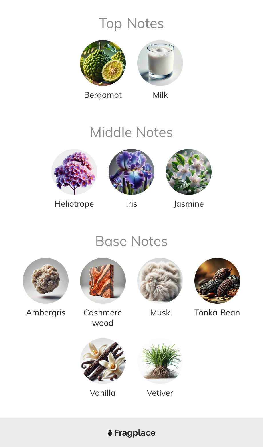 Caterina, de Allegro Parfum fue lanzado en 2018. El perfumista detrás de esta creación es desconocido. Tiene las notas de salida de Bergamota and Leche, notas de corazón de Heliotropo, Iris, and Jazmín, and notas de fondo de Ambergris, Madera de cachemira, Almizcle, Haba Tonka, Vainilla, and Vetiver.