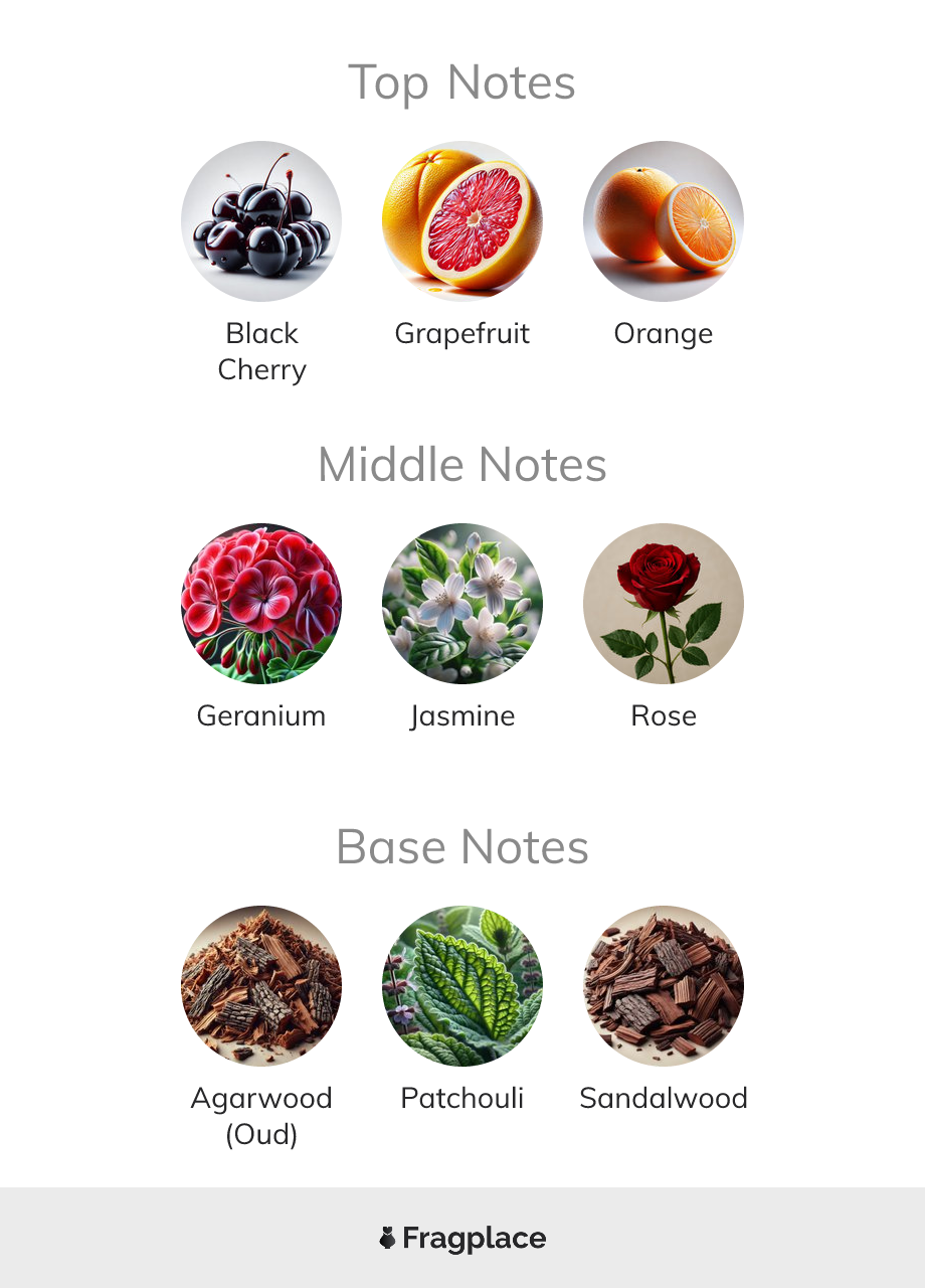 Notte d'Oro, de Valentino a été lancé en 2024. Le parfumeur derrière cette création est Paul Guerlain. Il a les notes de tête de Cerise noire, Pamplemousse, and Orange, notes de cœur de Géranium, Jasmin, and Rose, and notes de fond de Bois d'Agar (Oud), Patchouli, and Bois de santal.