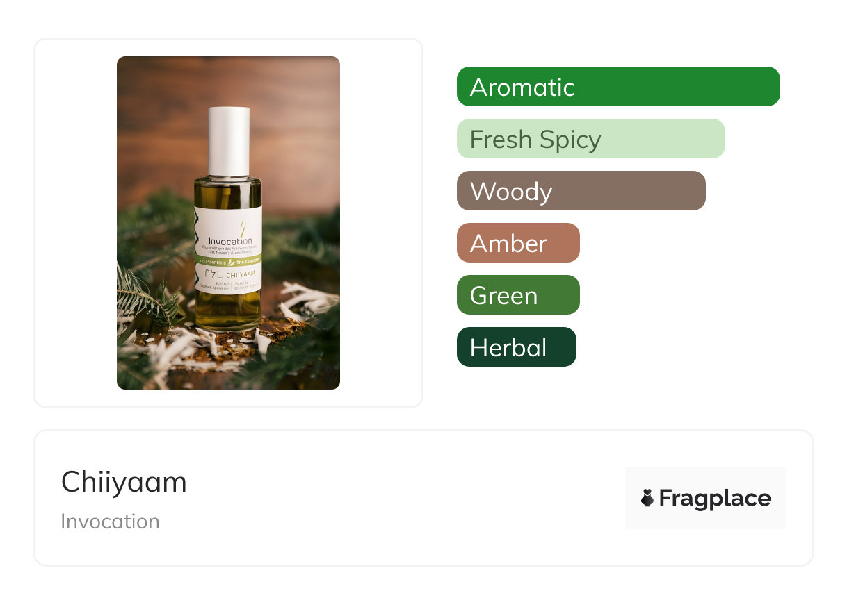 Chiiyaam, de Invocation a été lancé en 2018. Le parfumeur derrière cette création est inconnu. Les notes sont Bois de cèdre, L'herbe, Ciguë, Jatamansi ou Spikenard, Genévrier, Labdanum, Lavande, Orange Mandarine, Menthe, Oliban (encens), Rose, Romarin, Sage, Bois de santal, Tabac.
