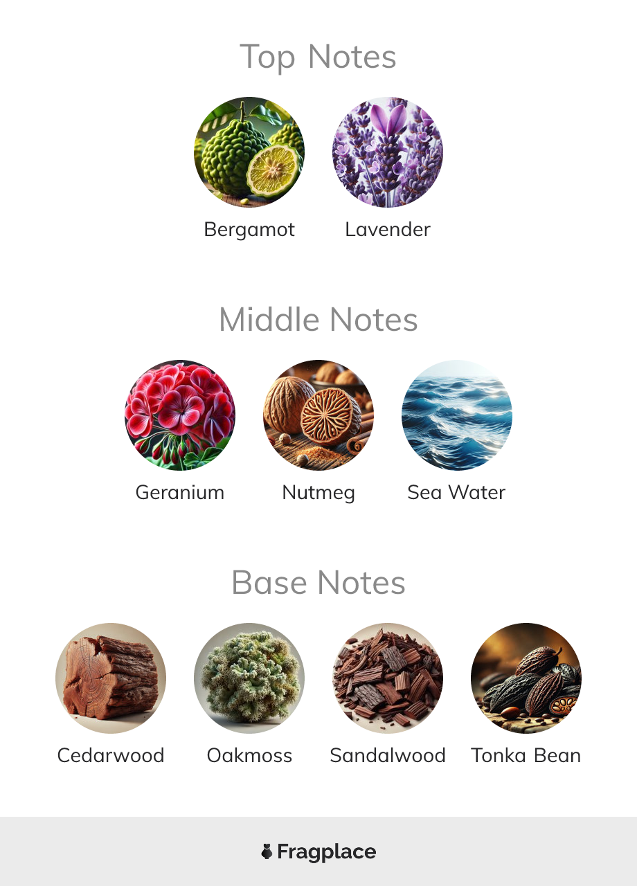 Faconnable Royal Eau de Parfum, de Façonnable a été lancé en 2018. Le parfumeur derrière cette création est Karine Dubreuil-Sereni. Il a les notes de tête de Bergamote and Lavande, notes de cœur de Géranium, Muscade, and Eau de mer, and notes de fond de Bois de cèdre, Mousse de chêne, Bois de santal, and Fève de Tonka.