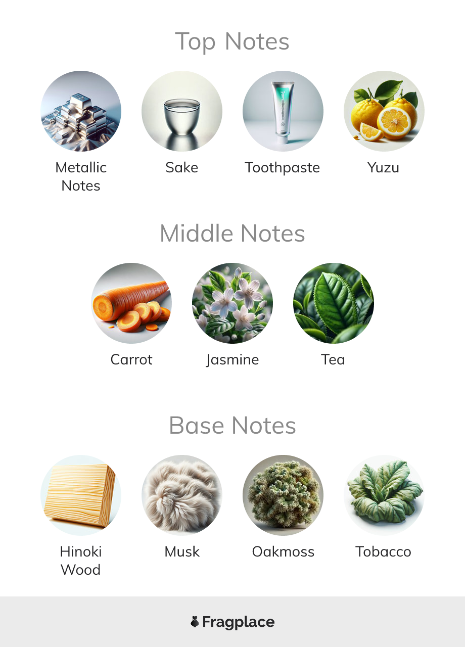 RE:M, de d.grayi a été lancé en 2022. Le parfumeur derrière cette création est James Nguyen. Il a les notes de tête de Notes métalliques, Le saké, Dentifrice, and Yuzu, notes de cœur de Carotte, Jasmin, and Thé, and notes de fond de Bois d'hinoki, Musk, Mousse de chêne, and Tabac.