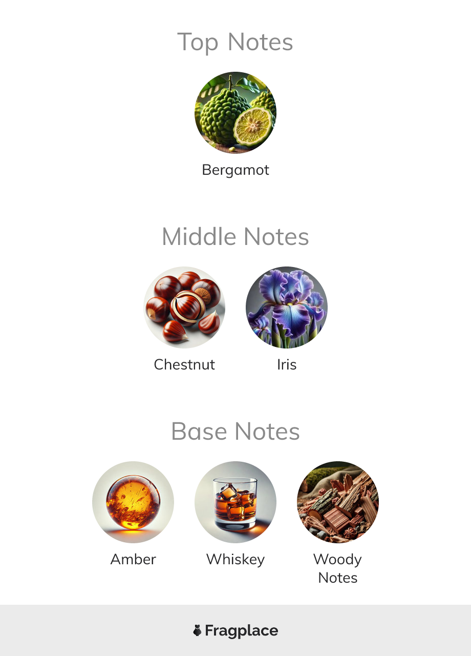 Mature, seductive but playful. Gets a lot of compliments because of that bold iris in the heart of the fragrance. The fresh bergamot disappears in a few minutes after you spray it but the chestnut note which follows is absolutely dreamy and pretty much lasts for 3-4 hours. Even though the notes list whiskey in it, don't let that put you off. It doesn't have that boozy, harsh alcohol smell but a more smoky finish. Lasts about 10hrs on clothes.