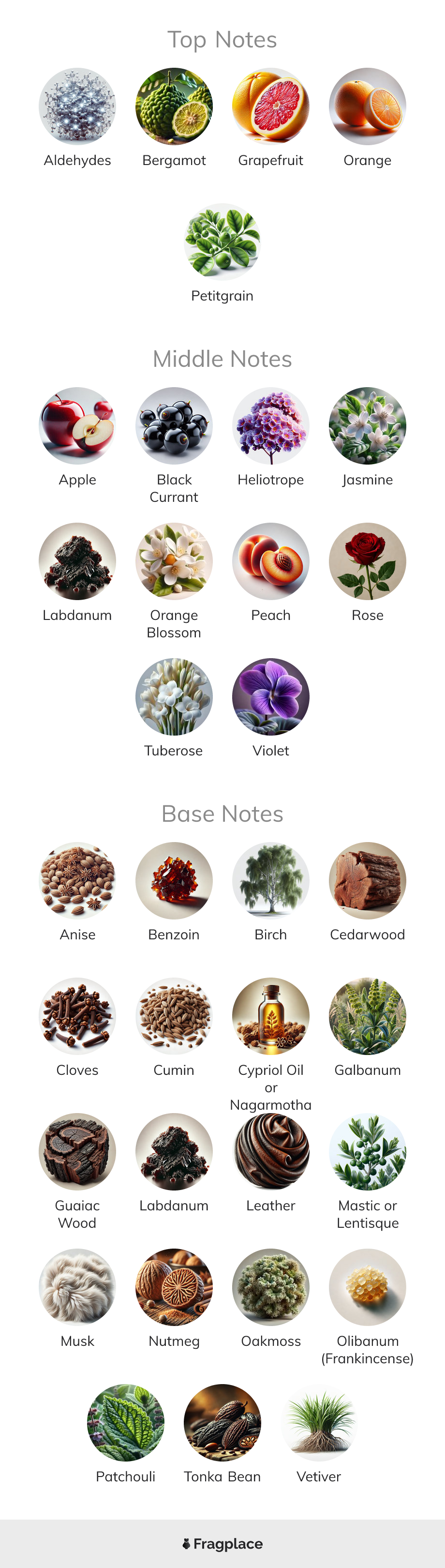 Roja Dove से Roja Dove Parfum Royale #5 2017 में रिलीज़ हुआ था। इस रचना के पीछे इत्र निर्माता Roja Dove हैं। इसमें Aldehydes, Bergamot, Grapefruit, Orange, and Petitgrain के टॉप नोट्स, Apple, Black Currant, Heliotrope, Jasmine, Labdanum, Orange Blossom, Peach, Rose, Tuberose, and Violet के मिडिल नोट्स, and Anise, Benzoin, Birch, Cedarwood, Cloves, Cumin, Cypriol Oil or Nagarmotha, Galbanum, Guaiac Wood, Labdanum, Leather, Mastic or Lentisque, Musk, Nutmeg, Oakmoss, Olibanum (Frankincense), Patchouli, Tonka Bean, and Vetiver के बेस नोट्स हैं।