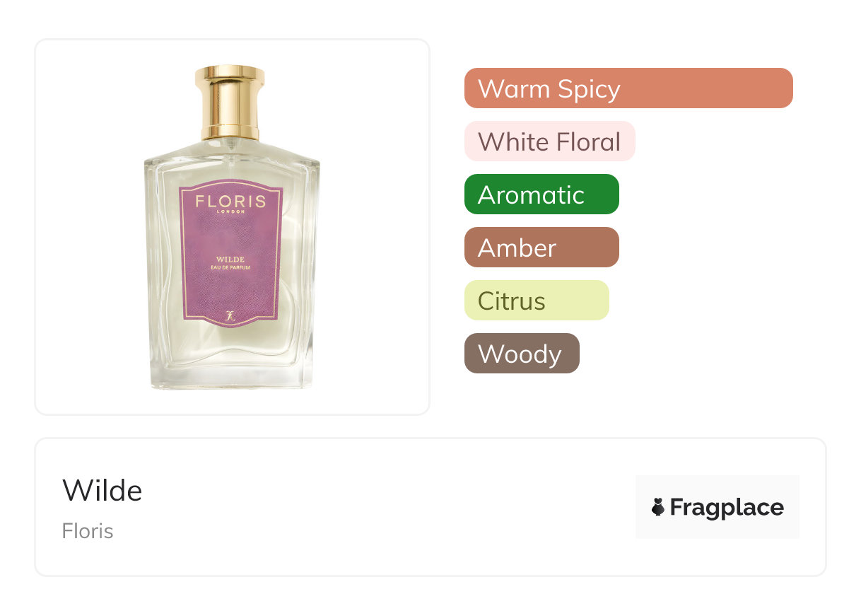 Wilde, di Floris è stato rilasciato nel 2024. Il profumiere di questa creazione è Caterina Catalani. Ha le note di testa di Bergamotto, Fiori di limone, and Acqua di mare, note di cuore di Garofano, Zenzero, and Gelsomino, and note di fondo di Benzoino, Olibano (incenso), and Sandalo.