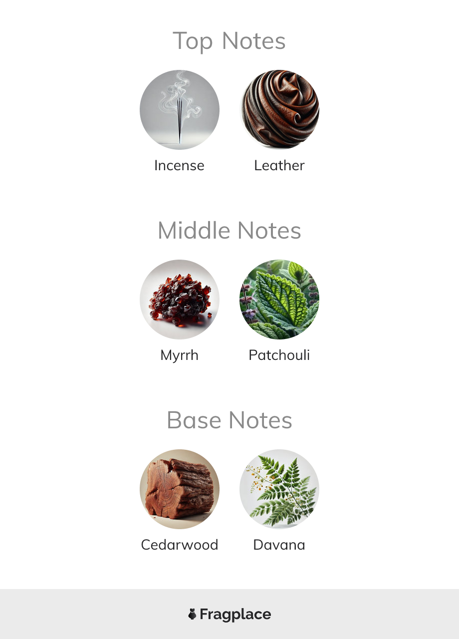 Questo ha quello e molto di più. Un patchouli scuro e speziato, legnoso, speziato. Il verde del patchouli e della davana si abbina magnificamente con il cuoio, così come un'incenso dolce e leggermente affumicato.