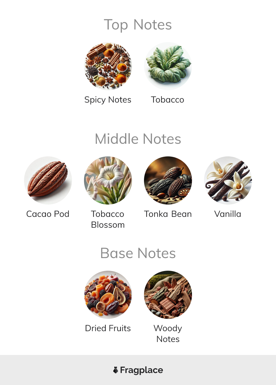 Tobacco Vanille, di Tom Ford è stato rilasciato nel 2007. Il profumiere di questa creazione è Olivier Gillotin. Ha le note di testa di Note speziate and Tabacco, note di cuore di Baccello di cacao, Fiore di tabacco, Fagiolo Tonka, and Vaniglia, and note di fondo di Frutta secca and Note legnose.