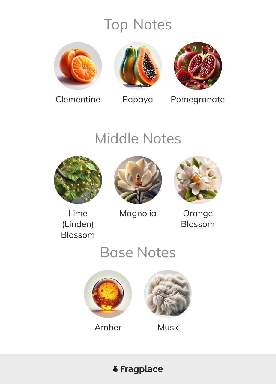 DKNY Women Summer 2012, di Donna Karan è stato rilasciato nel 2012. Il profumiere di questa creazione è sconosciuto. Ha le note di testa di Clementina, Papaya, and Melograno, note di cuore di Fiori di tiglio, Magnolia, and Fiori d'arancio, and note di fondo di Ambra and Muschio.