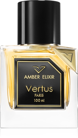 Amber Elixir, di Vertus è stato rilasciato nel 2015. Il profumiere di questa creazione è sconosciuto. Ha le note di testa di Artemisia, Frutta secca, Pompelmo, Pepe, and Rum, note di cuore di Ambra, Legno di cashmere, Legno di cedro, Labdano, and Zafferano, and note di fondo di Castoreo, Muschio, Sandalo, Legno di teak, and Fagiolo Tonka.